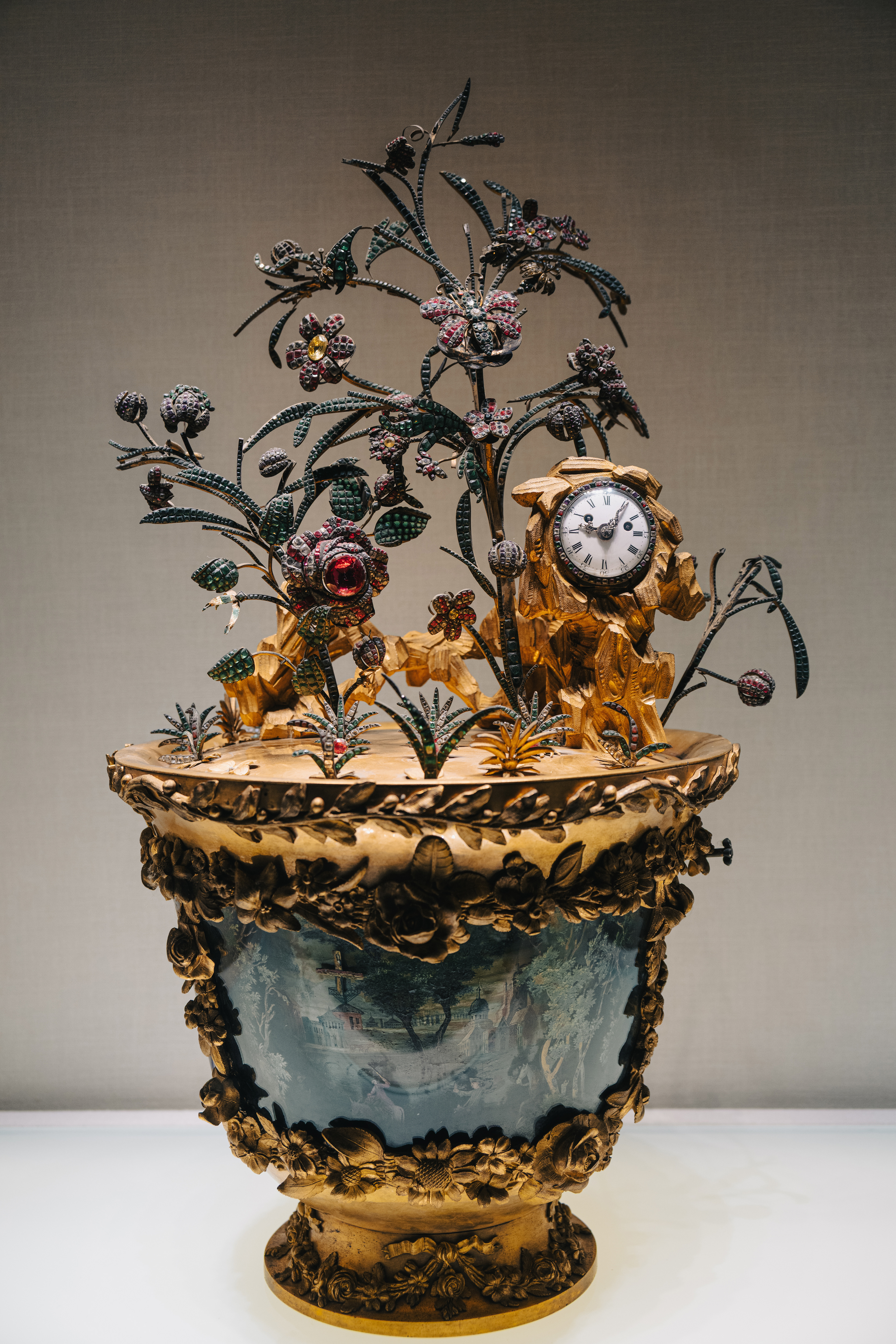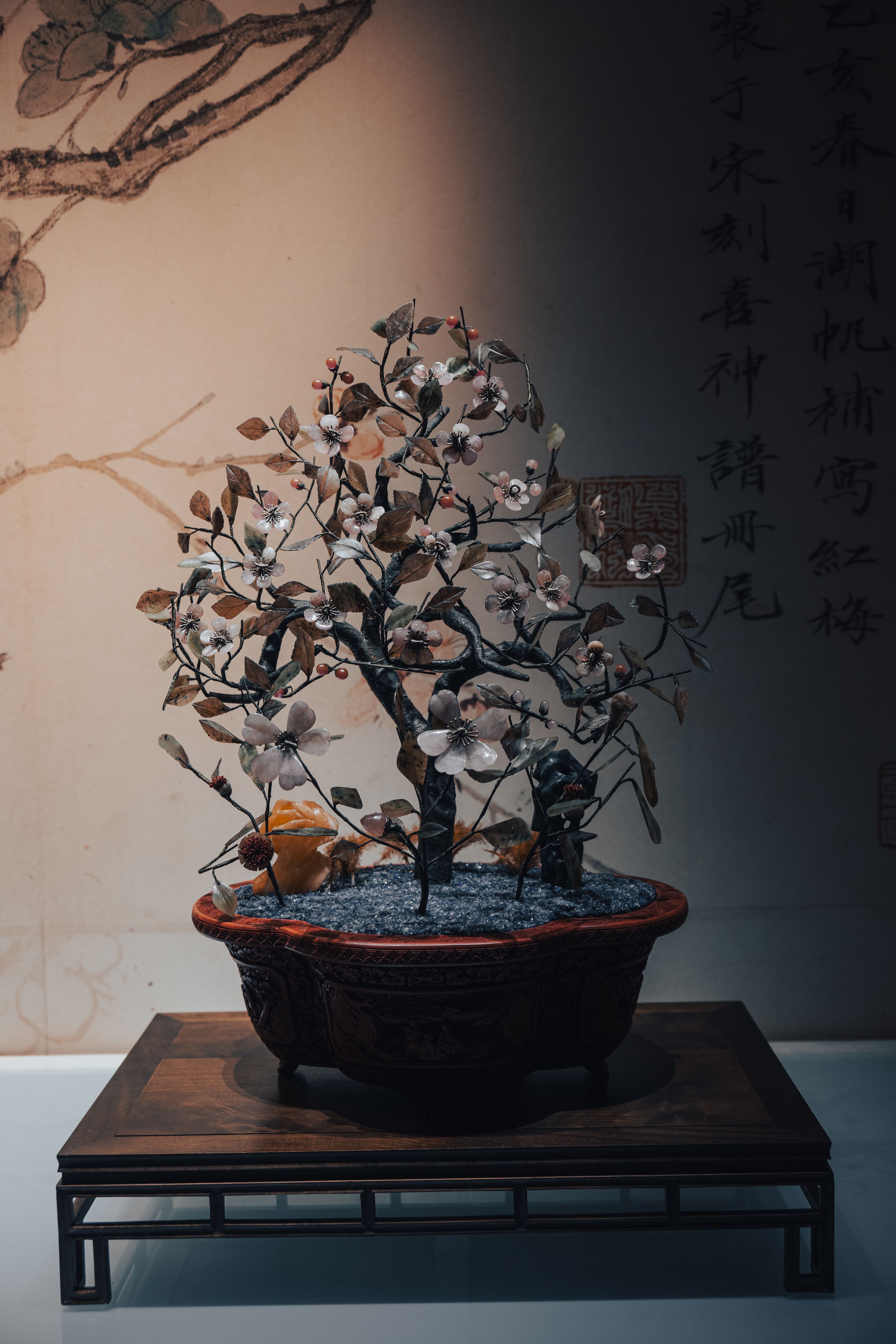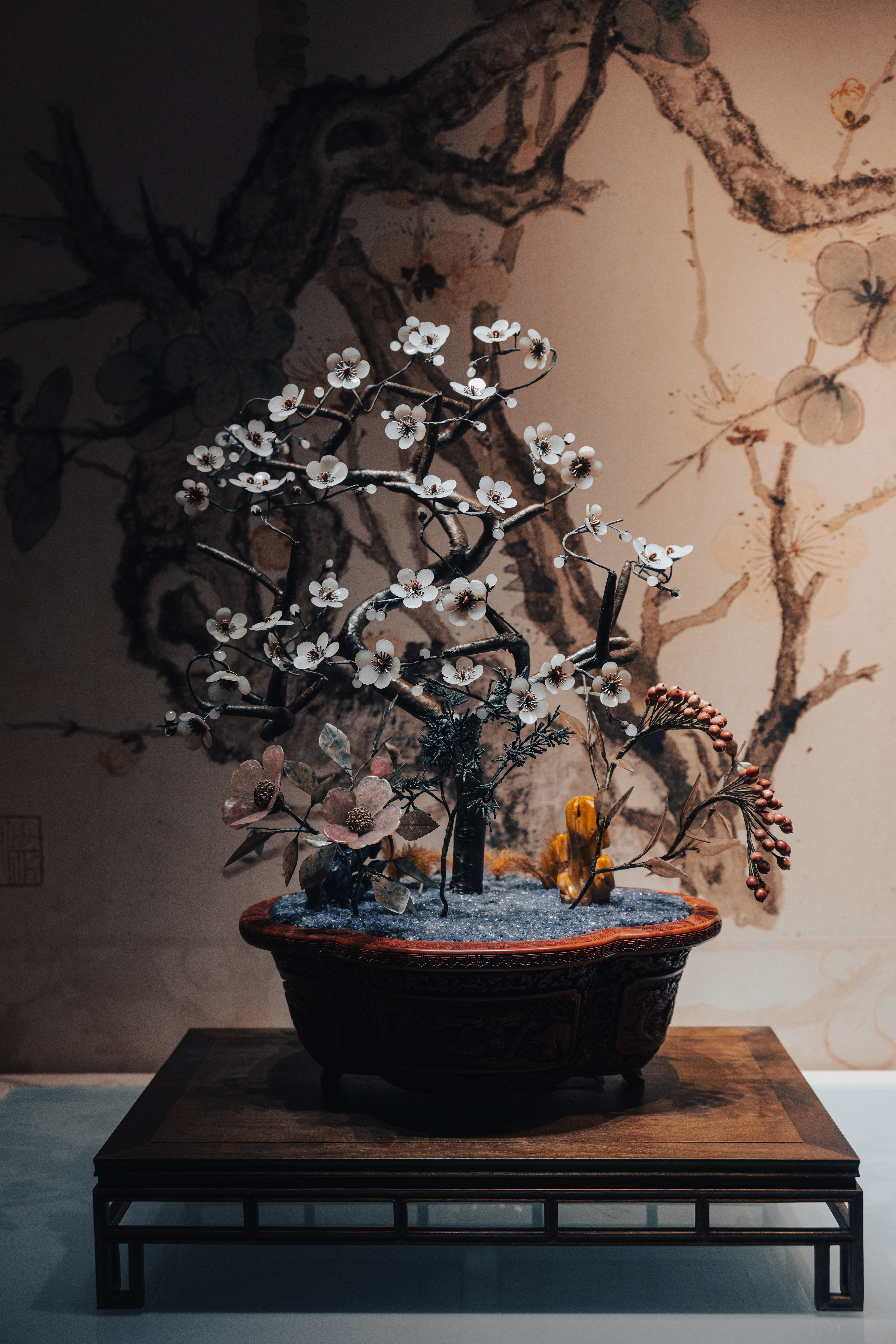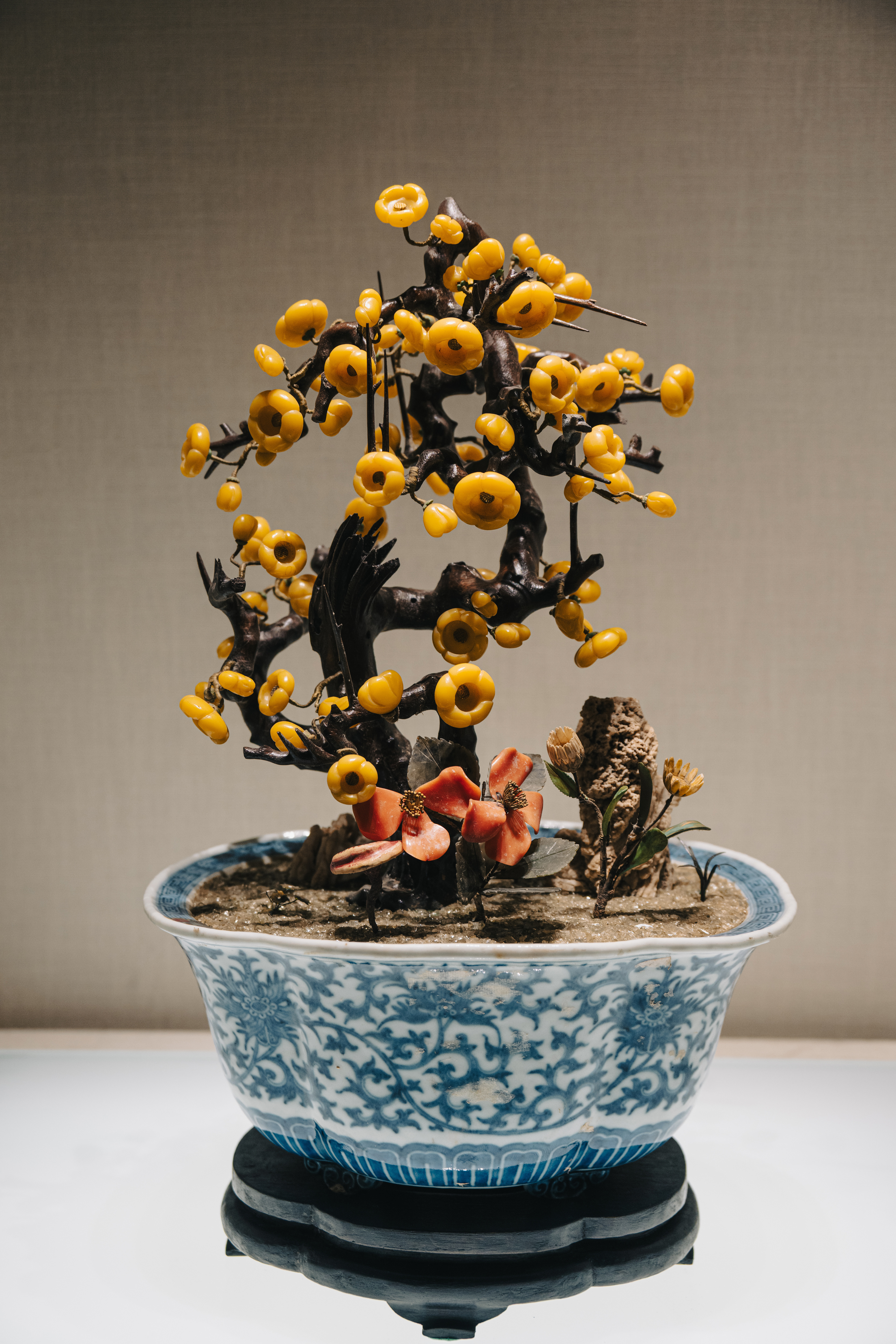铜镀金嵌珐琅海棠式盆红珊瑚盆景