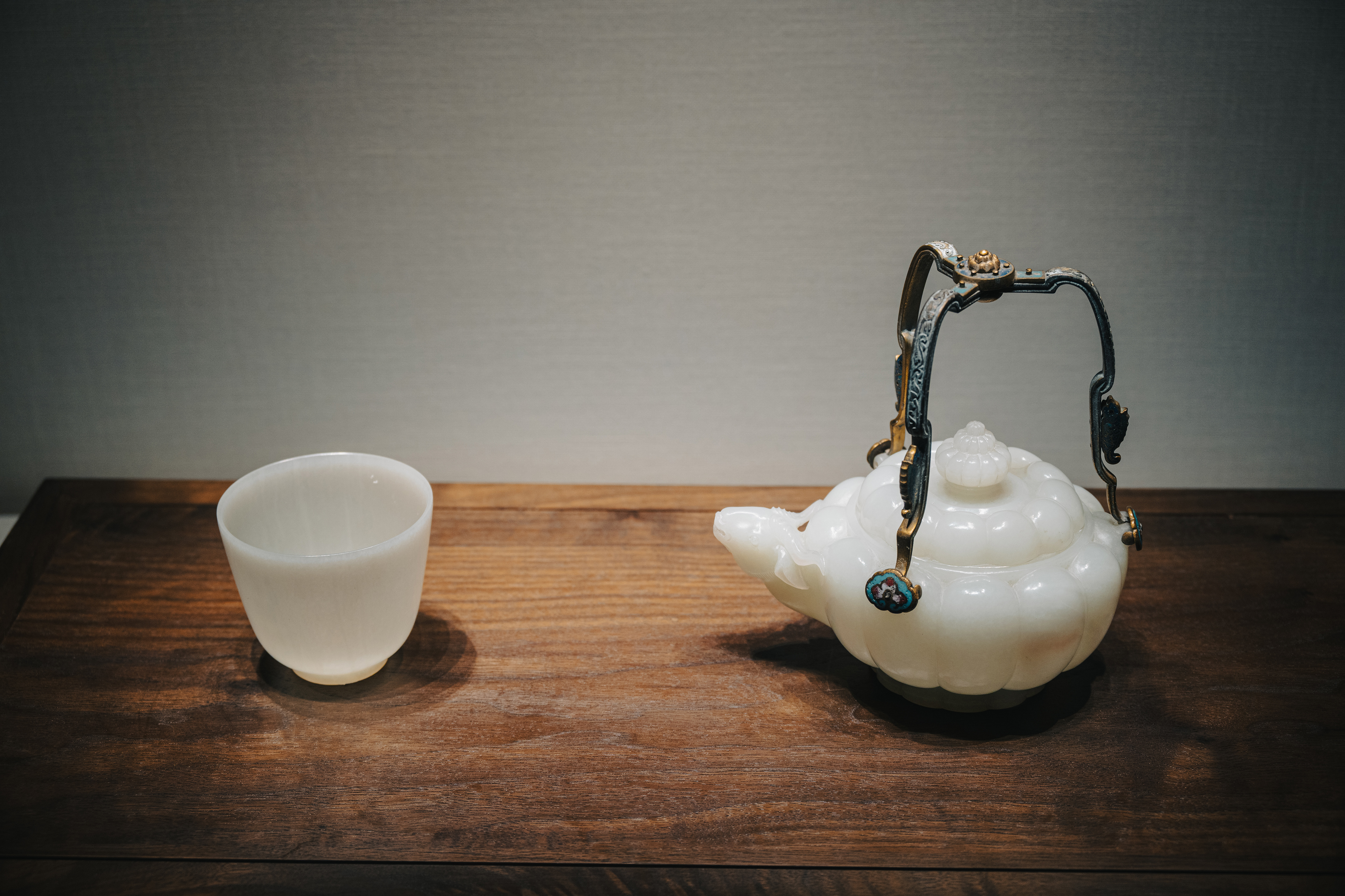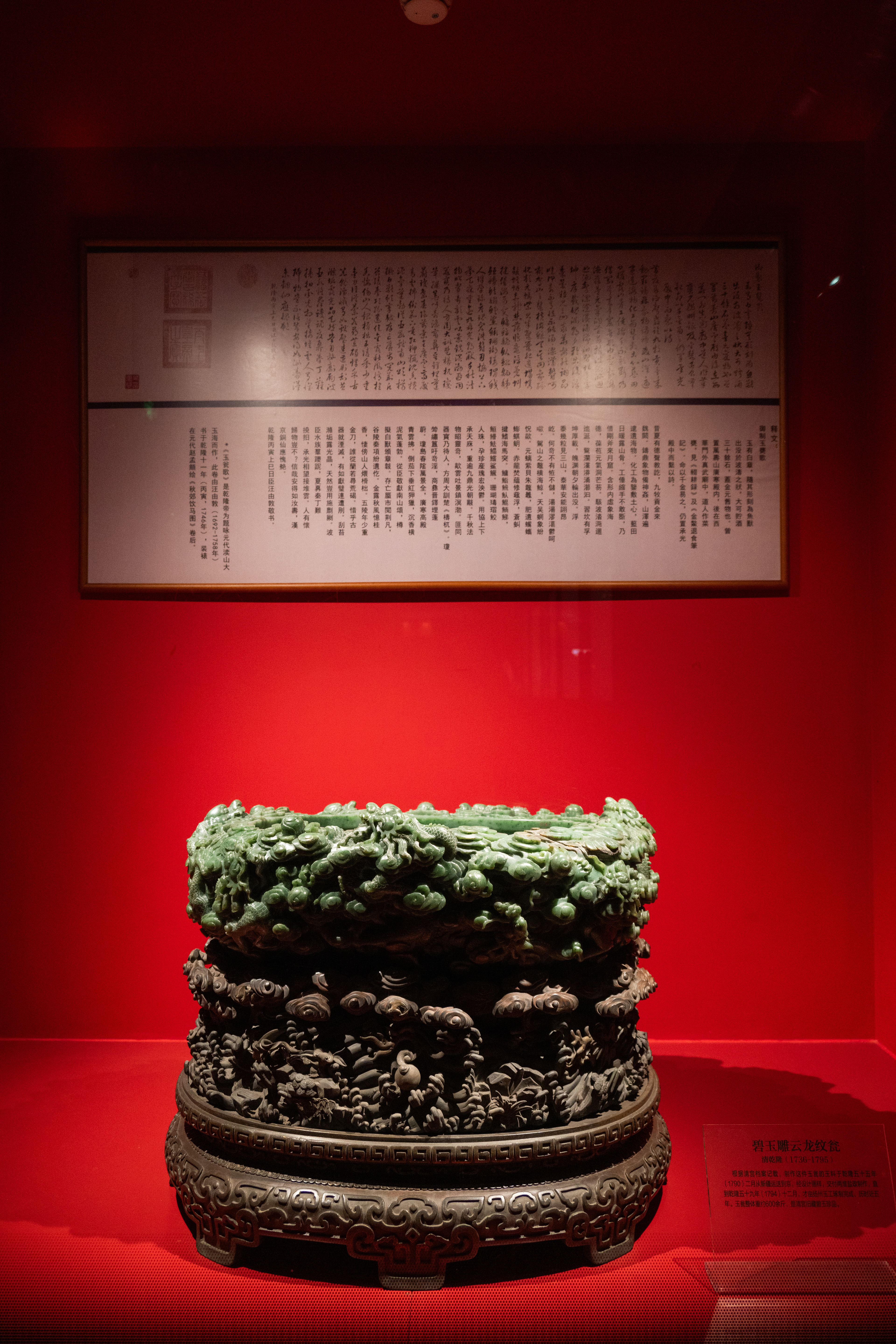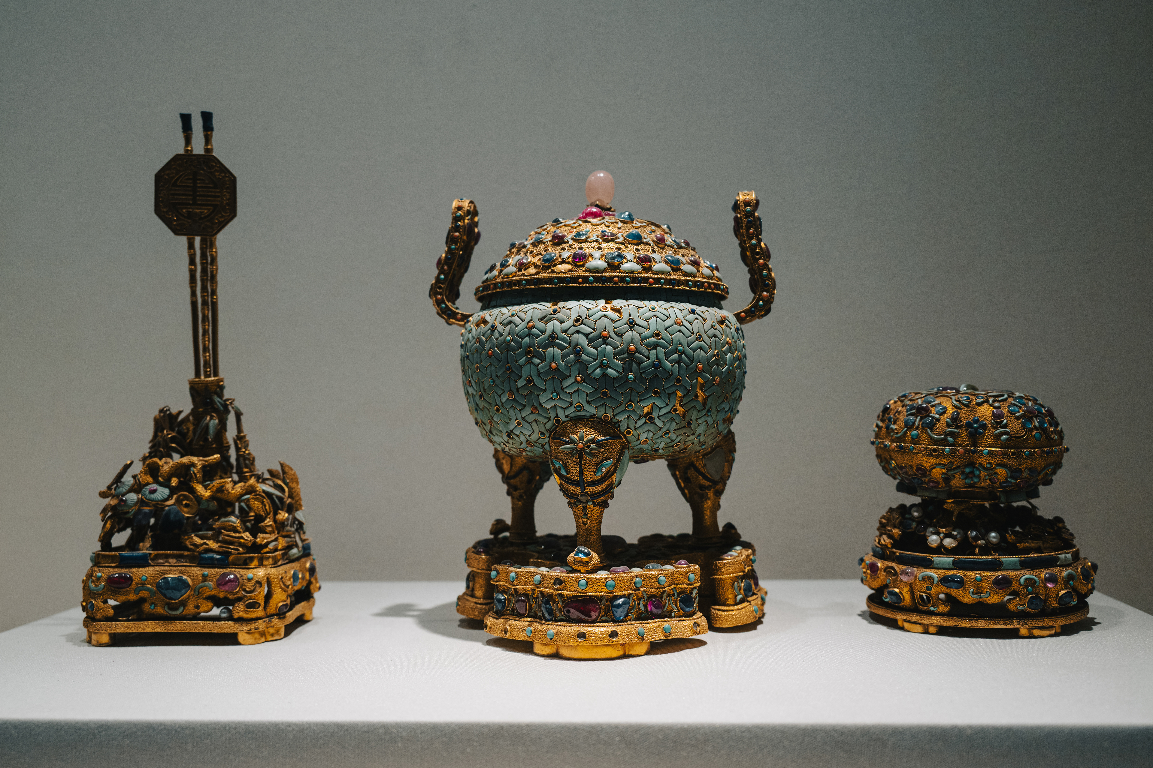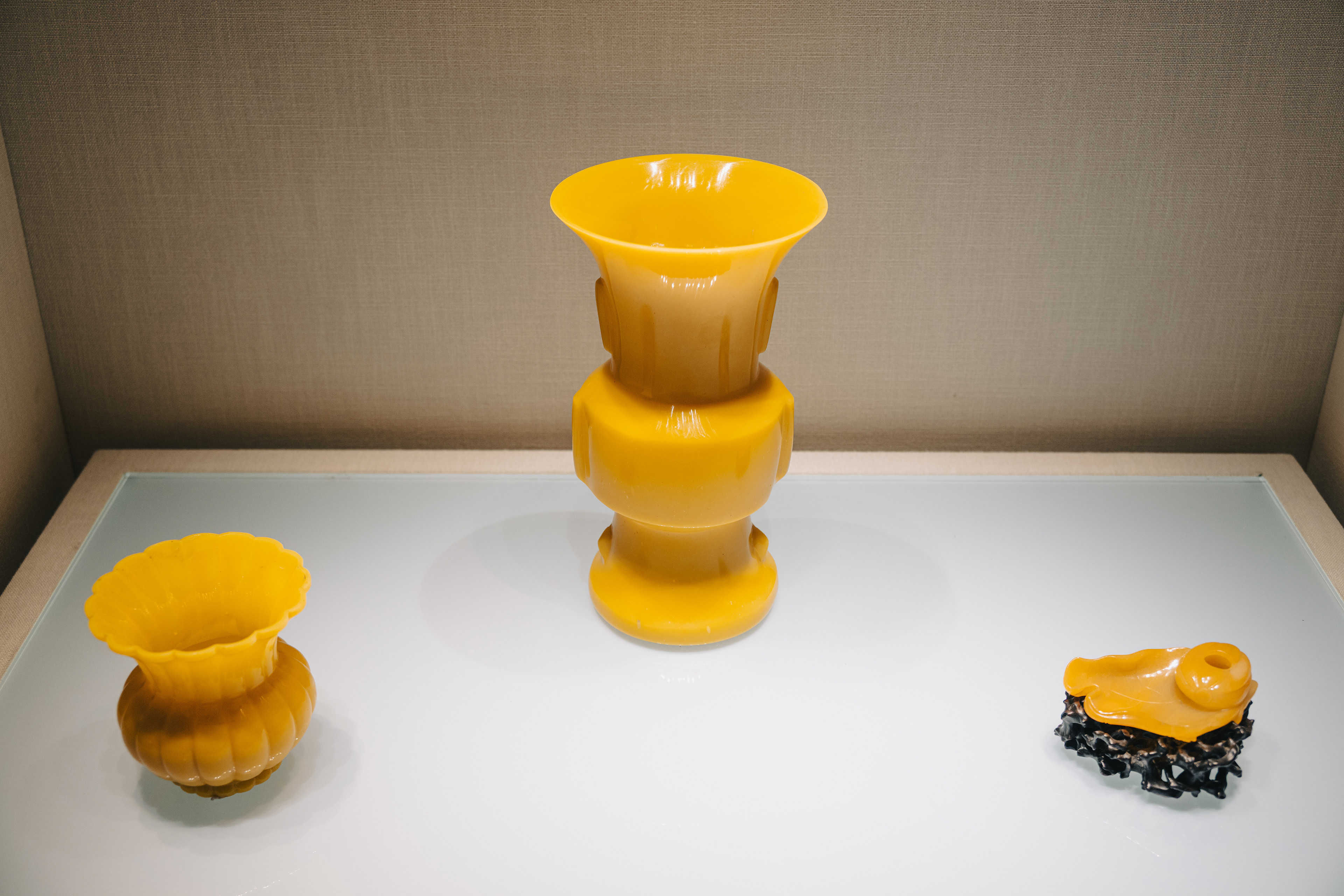 青金石雕山水图(左),松泉人物图(中),卧牛(右)