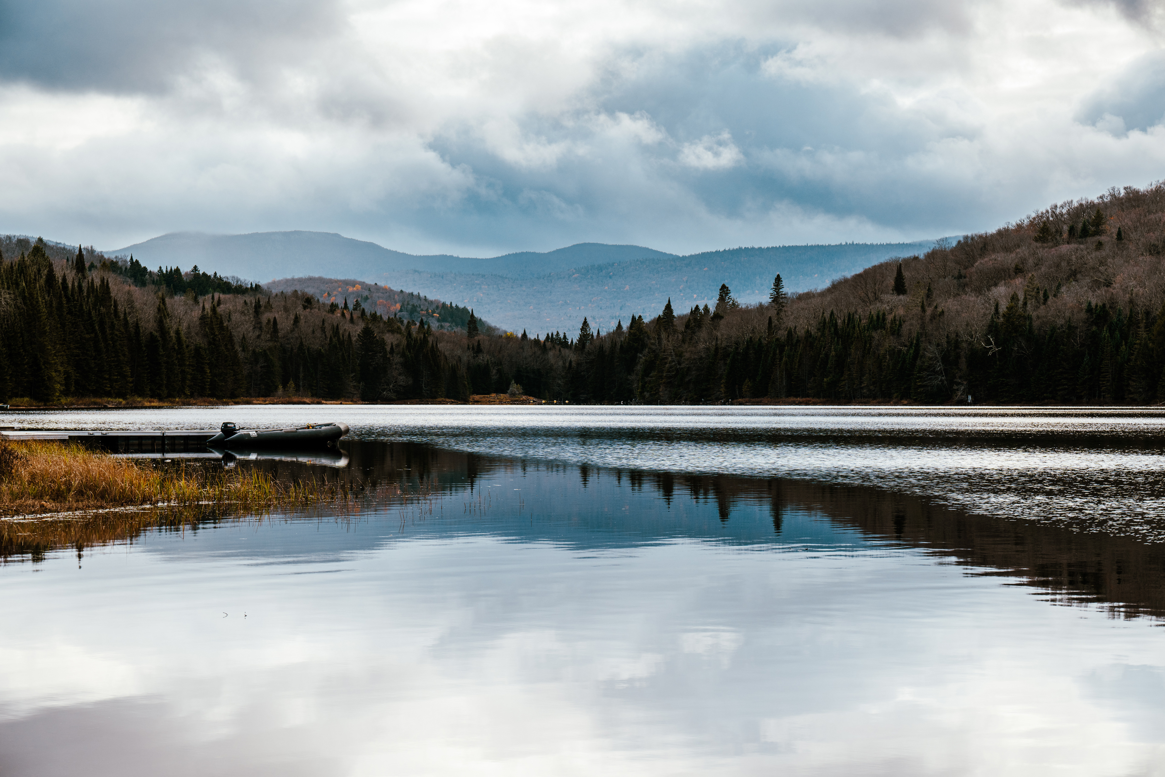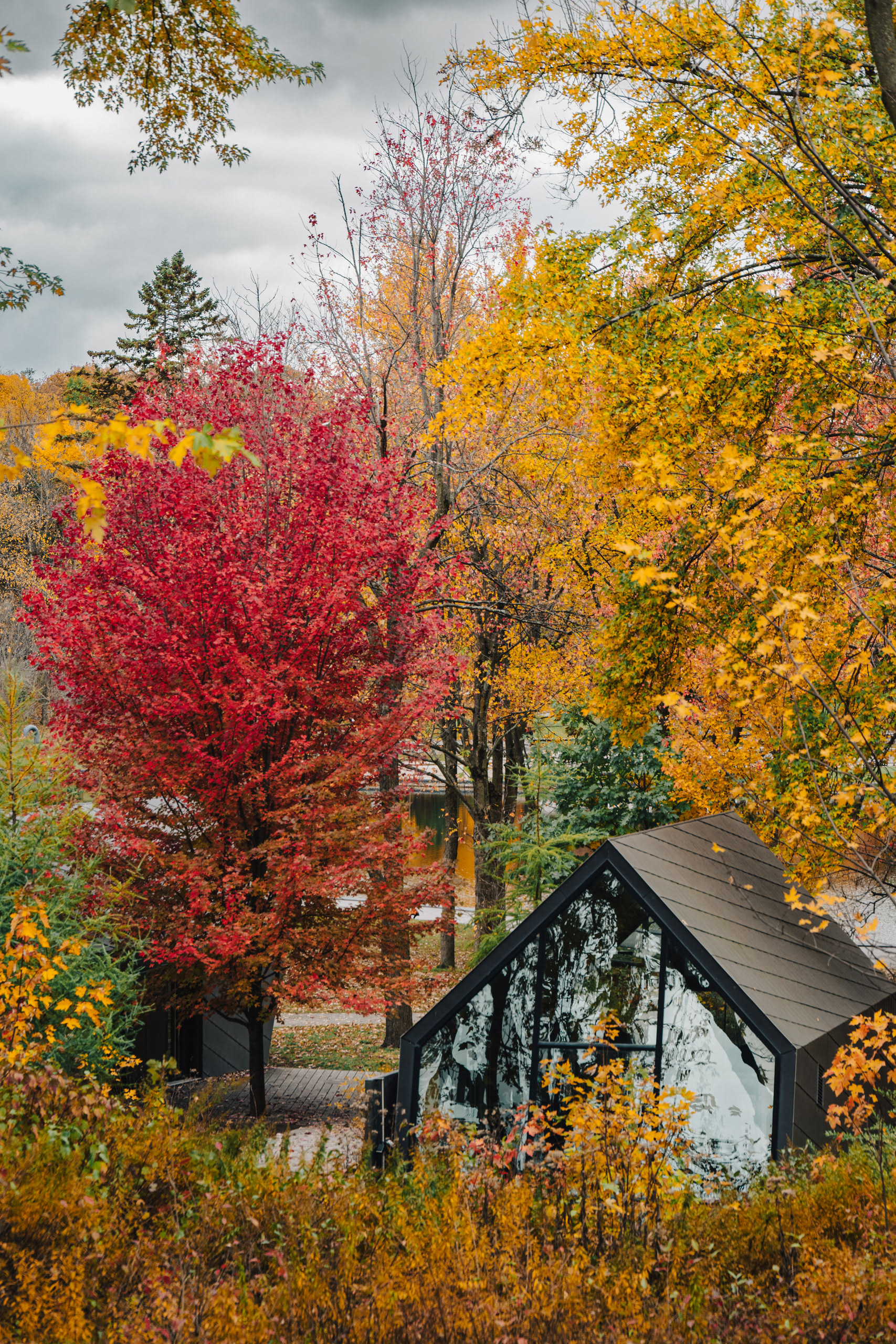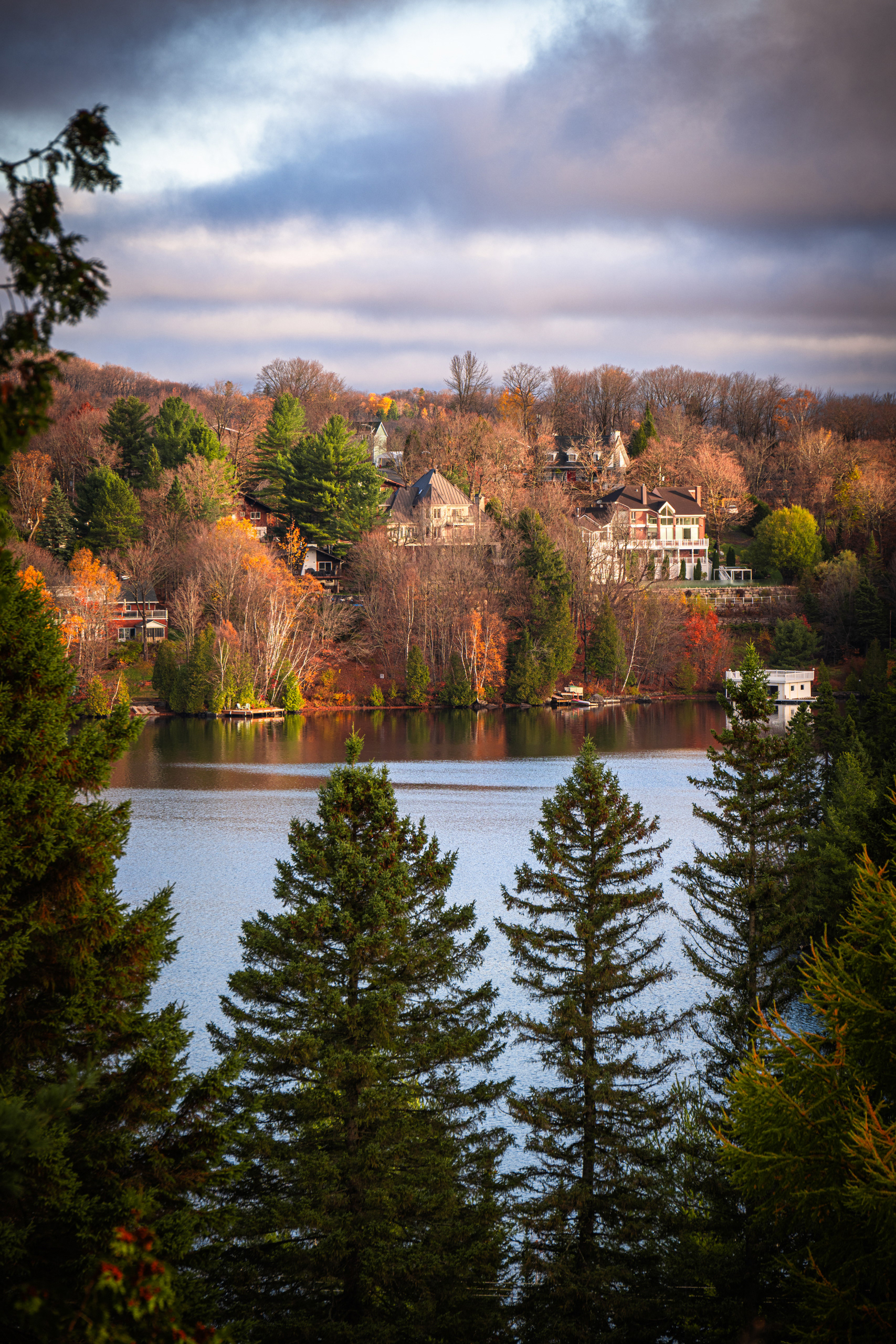 The Laurentians are among the oldest mountain ranges on earth — far older than the Rockies, old enough that they've had the sharp edges worn off by a billion years of wind and glaciation. What's left is a landscape of rounded summits, deep blue lakes, and forest that in October looks like someone took a palette knife to a canvas and just went for it.