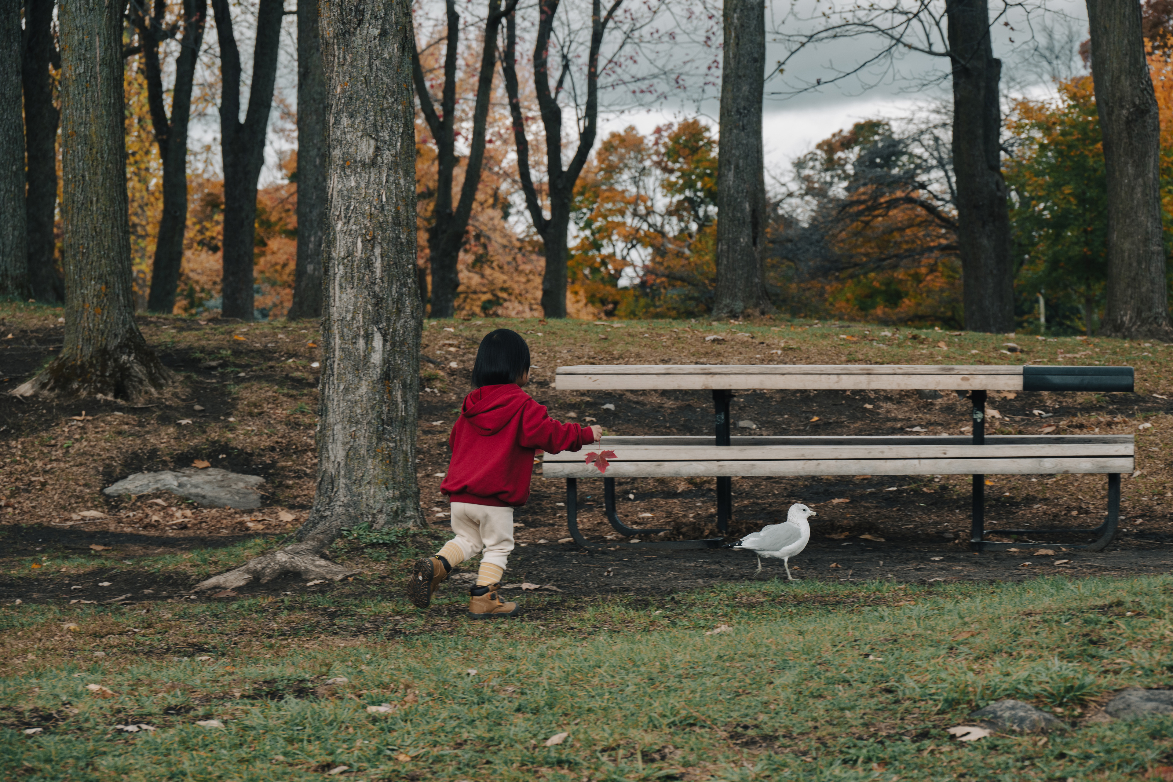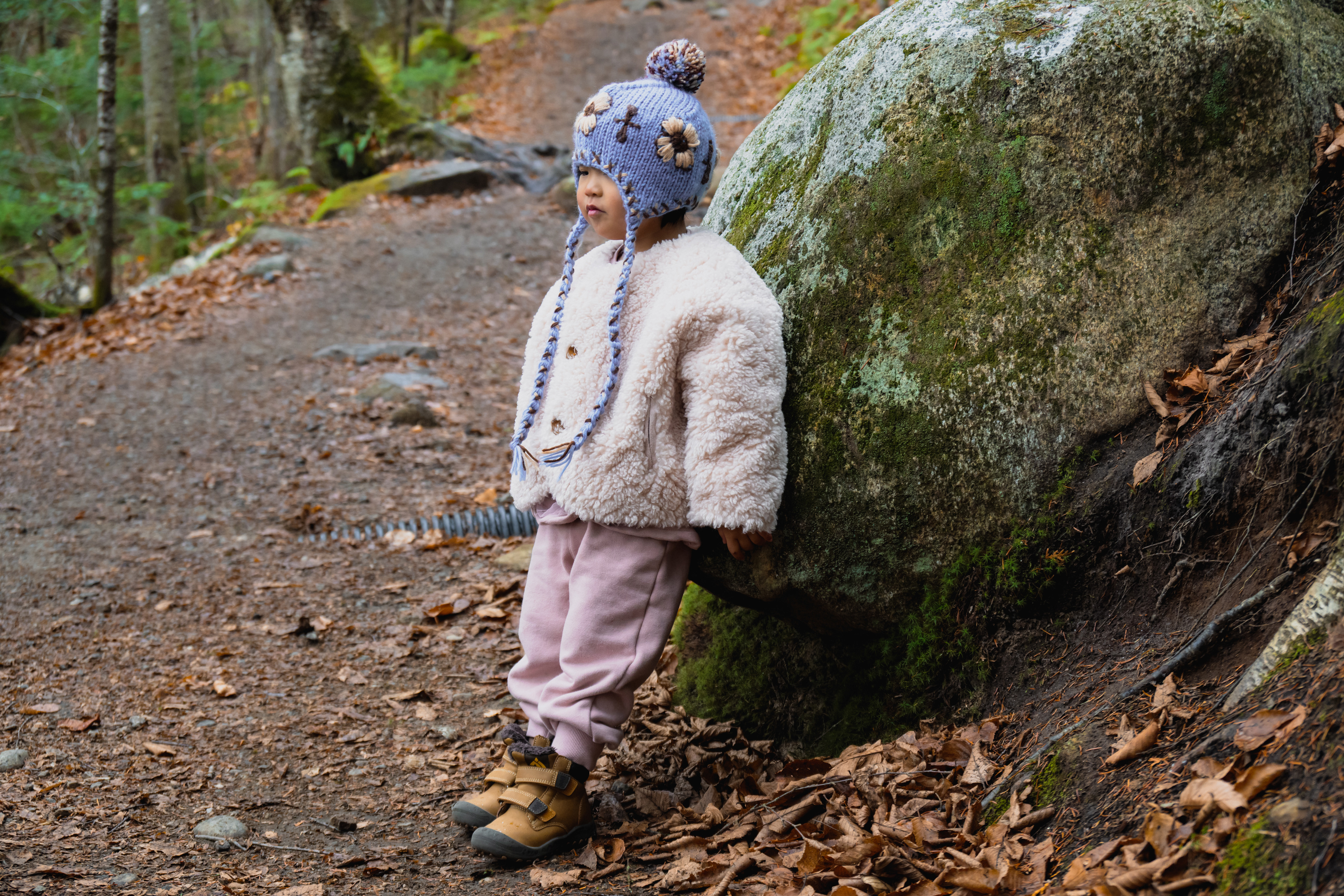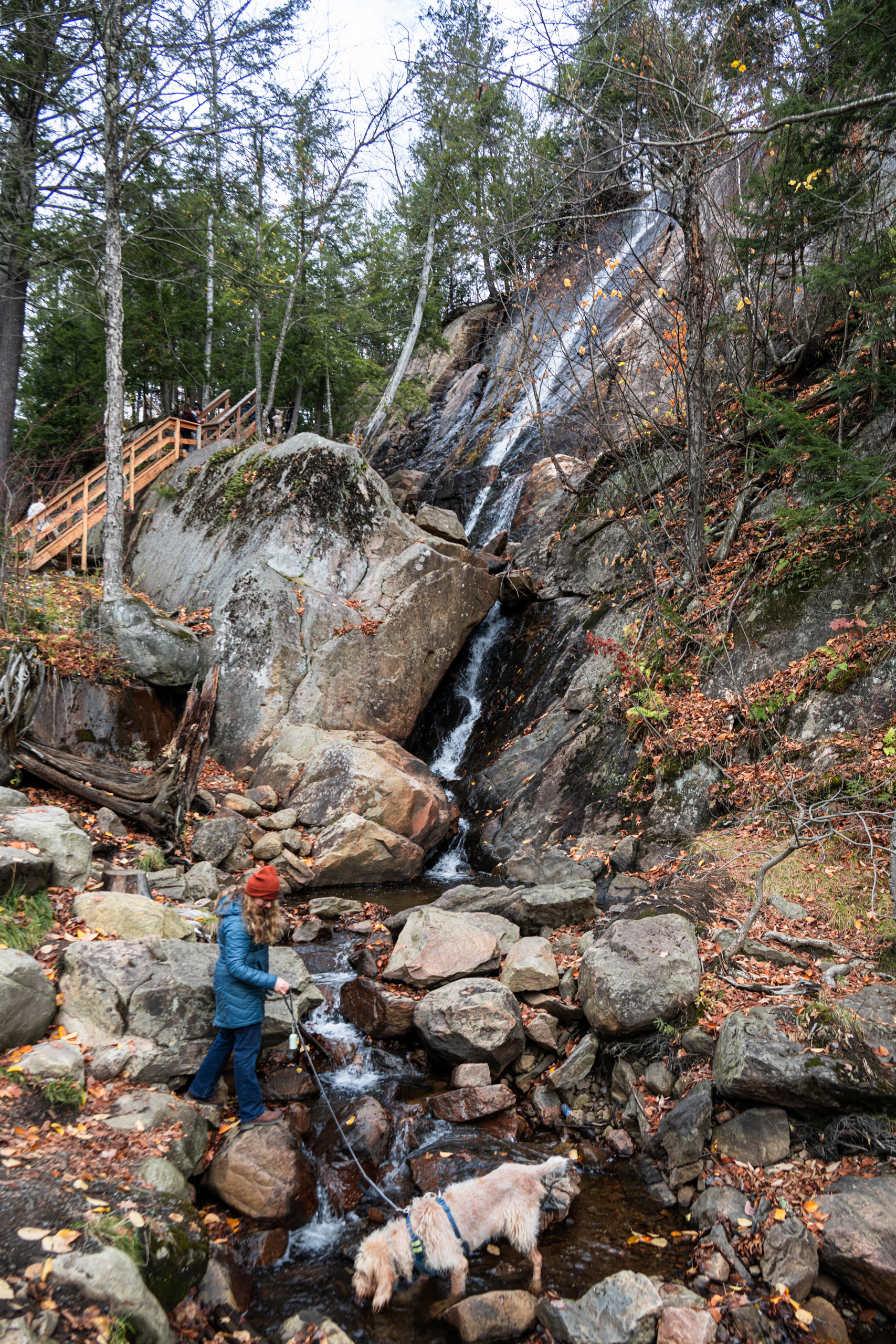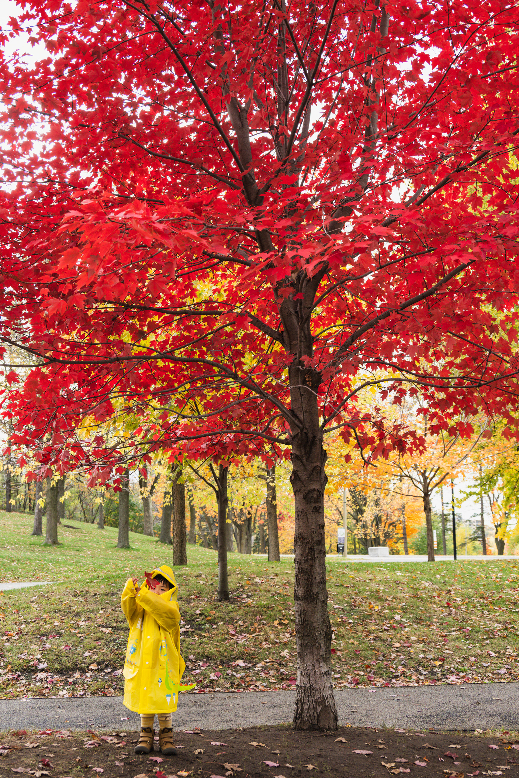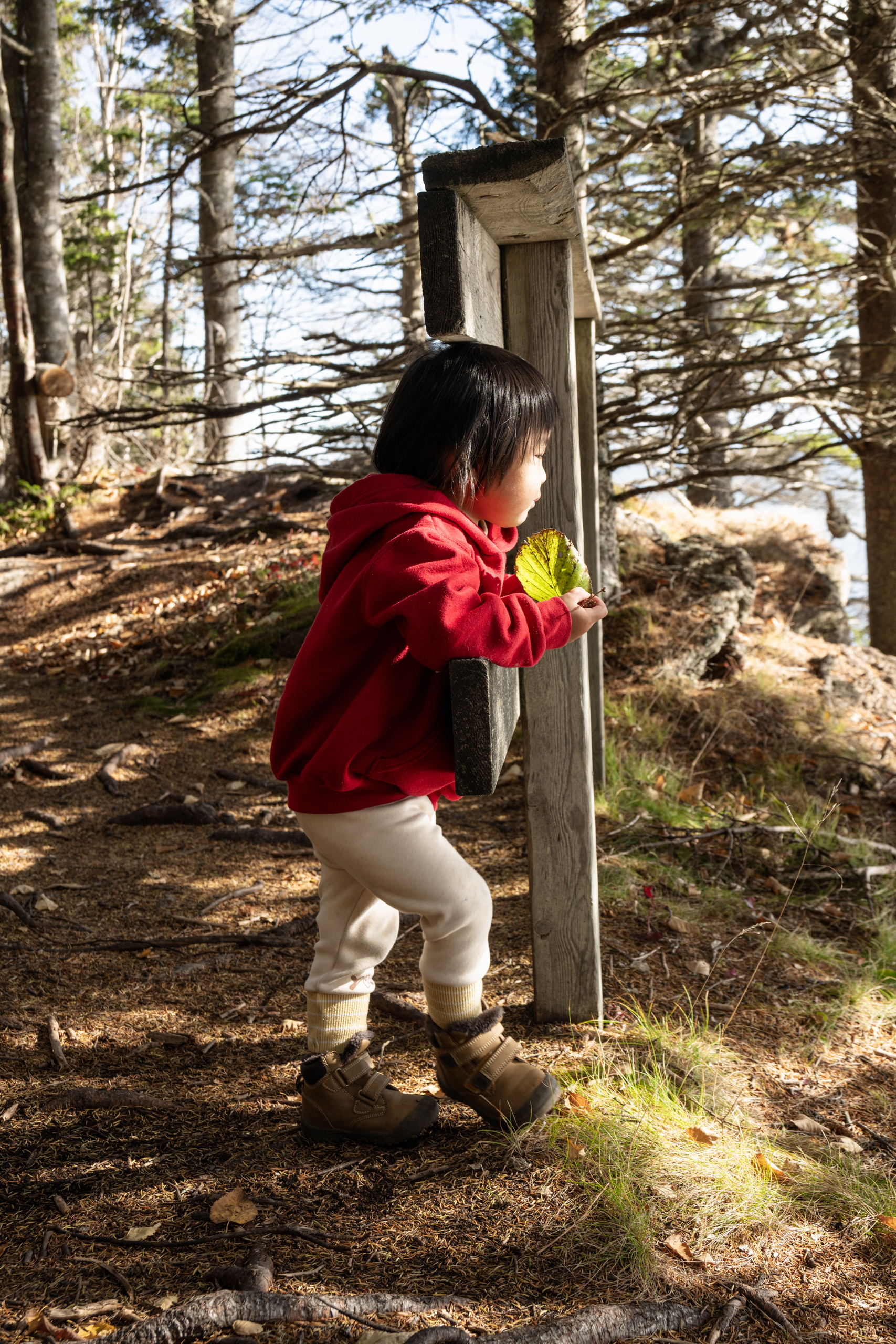 The rational argument writes itself: the foliage window is narrow, the family is scattered across time zones, and the leaves wait for no one. So this (2025) October, I packed a car seat, a portable potty (non-negotiable), and my daughter — who is at the age where every crow, puddle, and parking cone demands full photographic documentation — and pointed the rental car toward everything east.