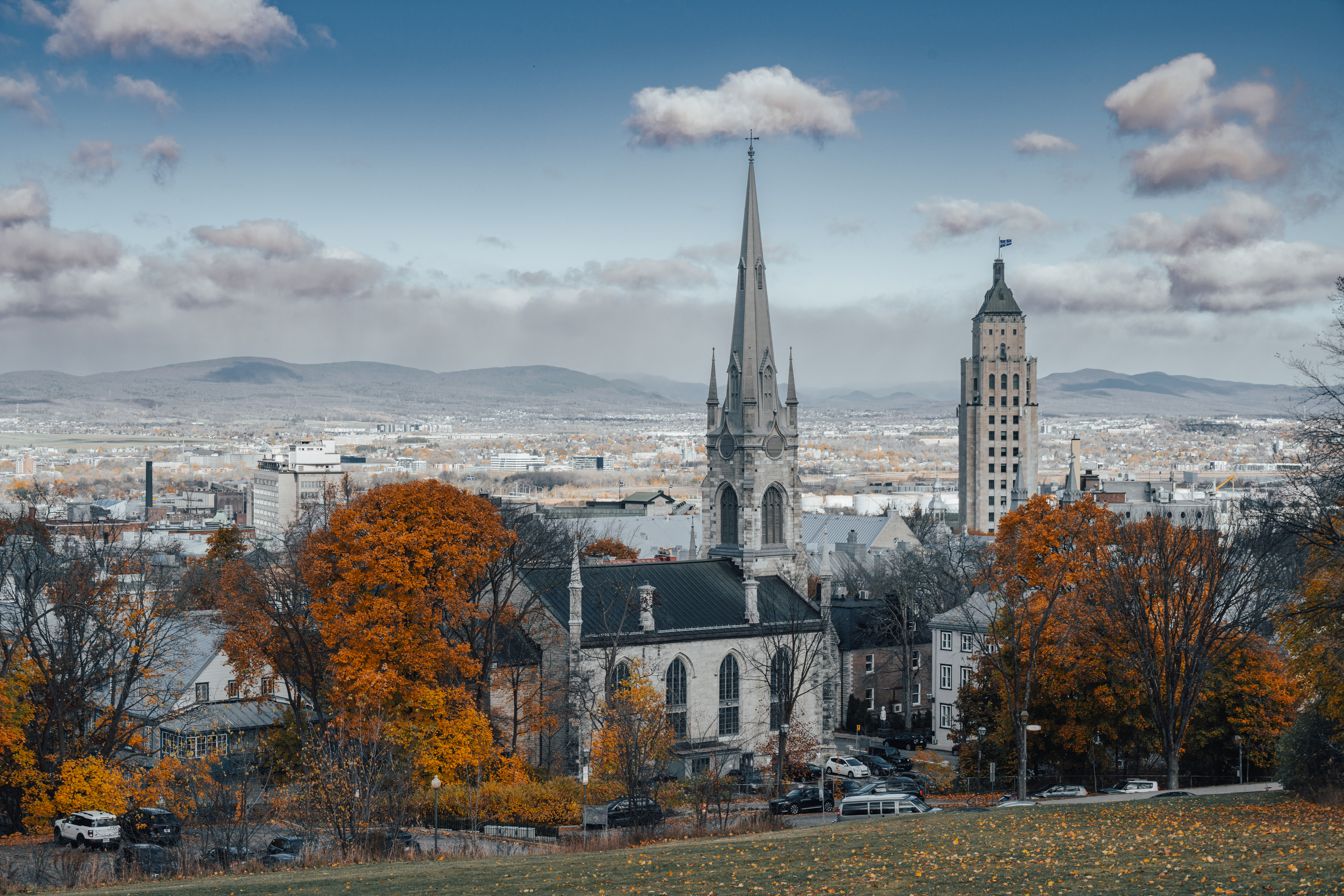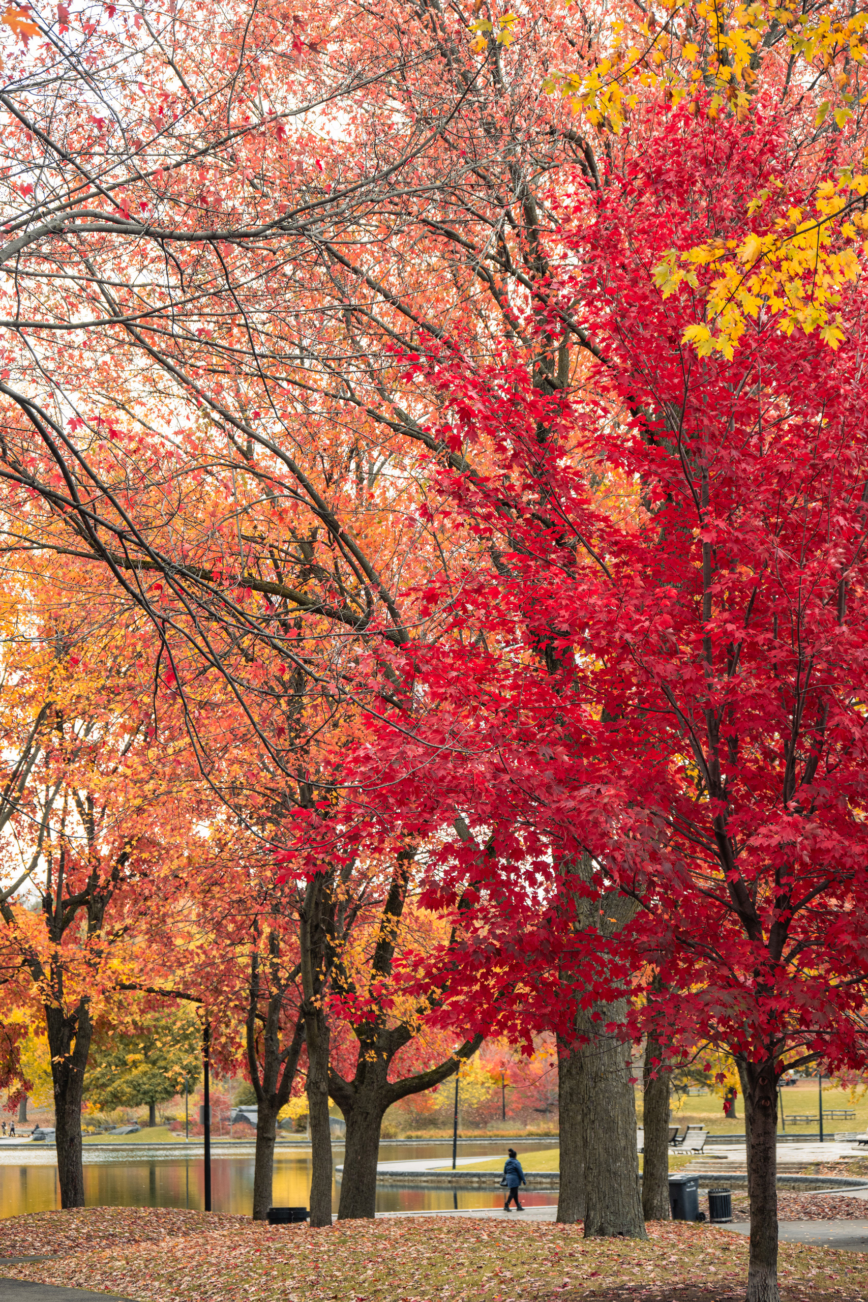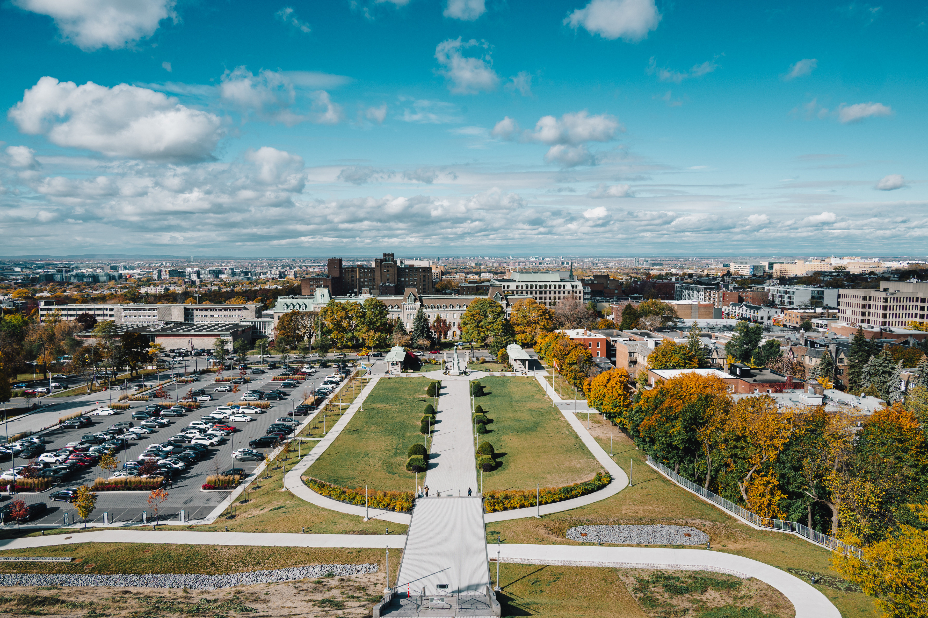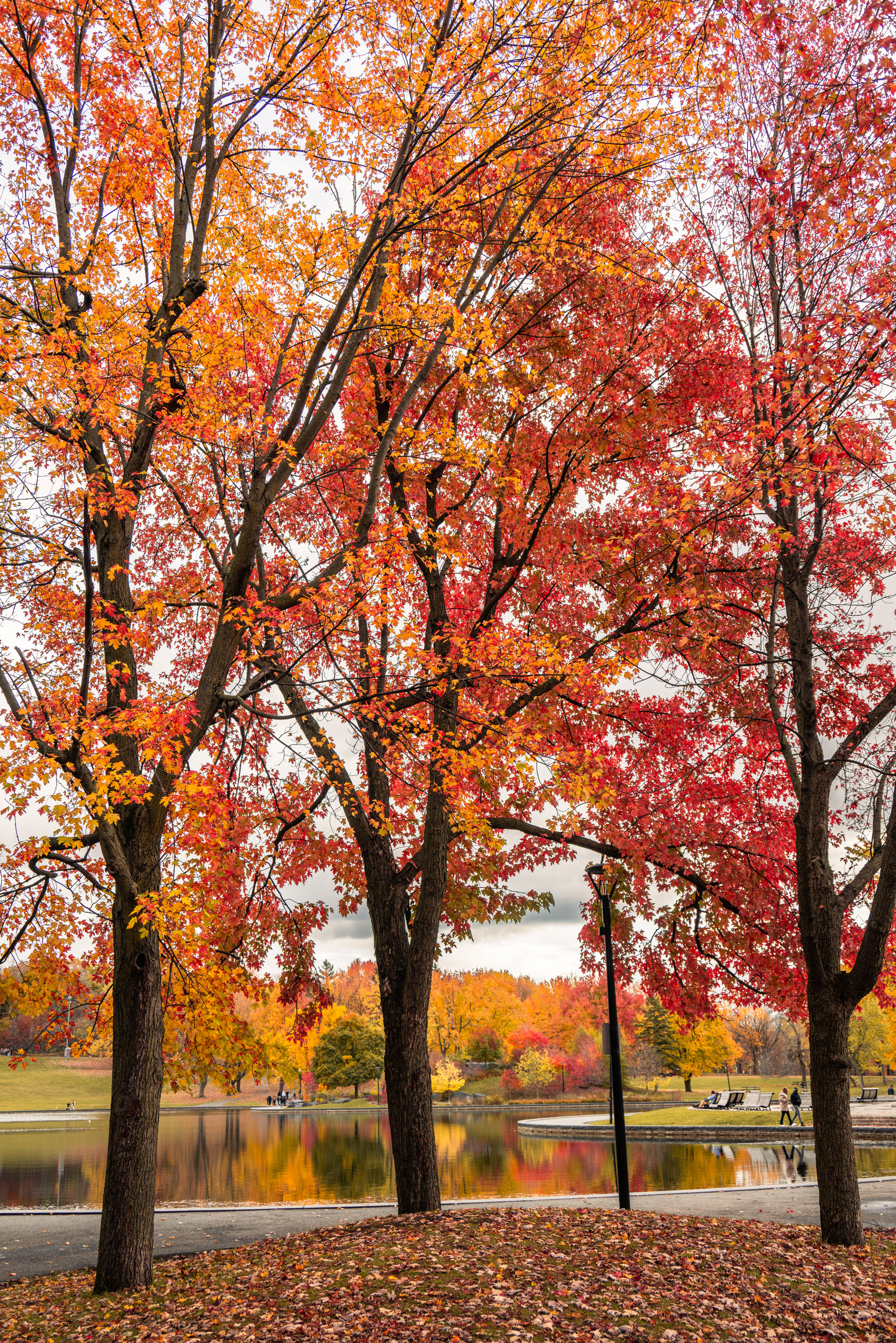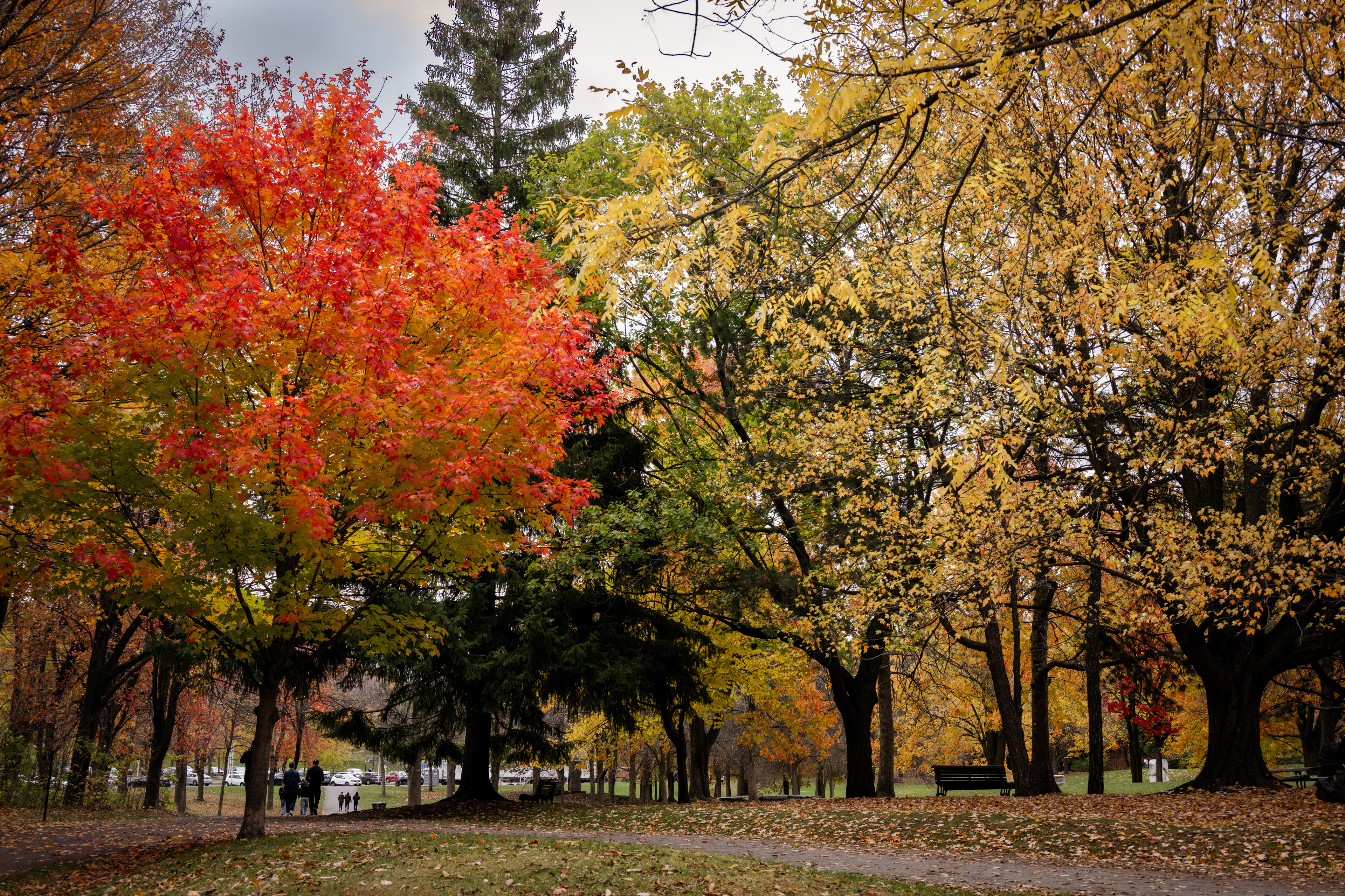 Mont Royal — the modest 233-meter hill that gives the city its name — is one of those places that quietly explains everything about where you are. Frederick Law Olmsted designed the park in 1876, which means yes, the same man who did Central Park also did this, and yes, he had a clear type. On the October morning we arrived, the summit lookout at Kondiaronk Belvedere was a full-on chromatic riot: sugar maples in neon orange, oaks in burgundy, birches doing their best impression of spun gold. The St. Lawrence River glinted silver below. My daughter demanded we circle the same bench three times for reasons known only to her.