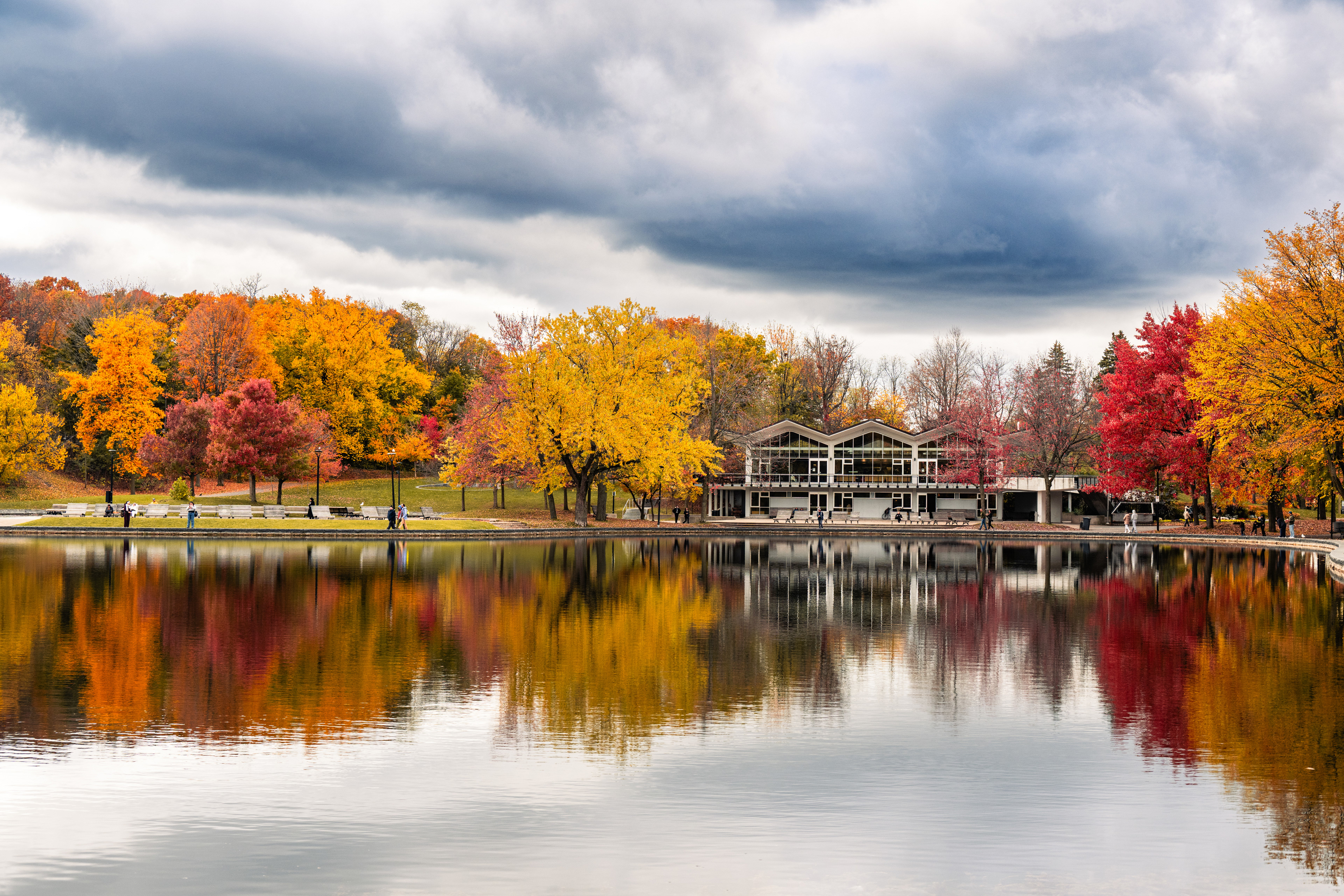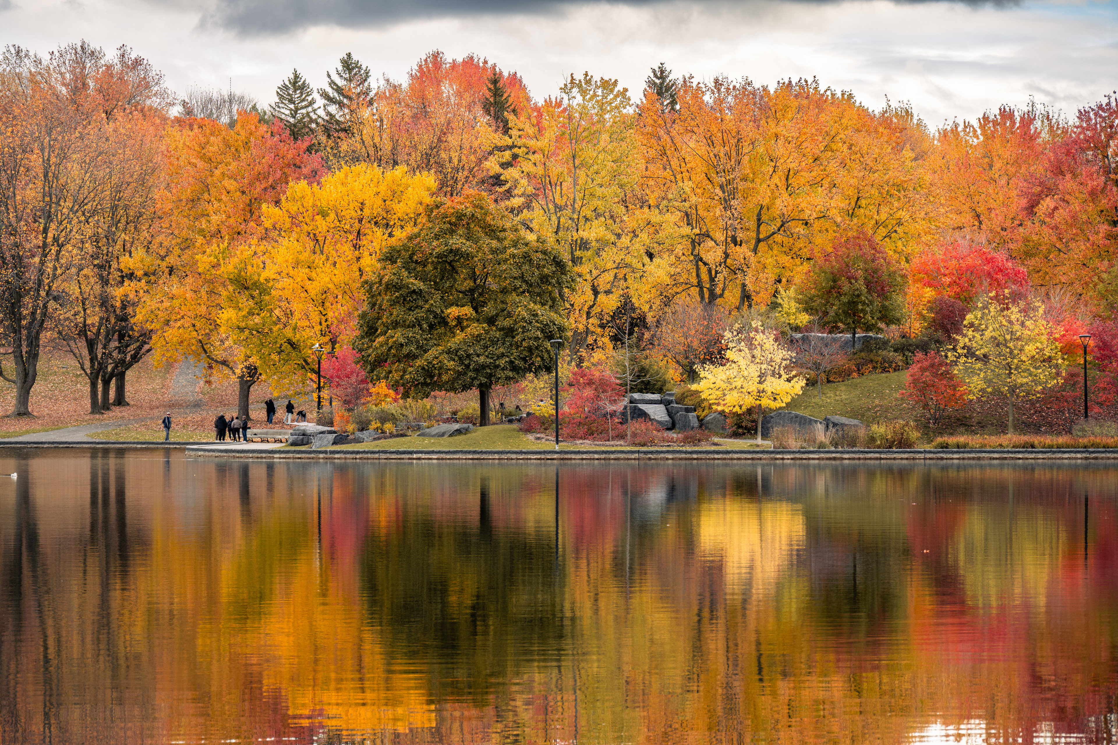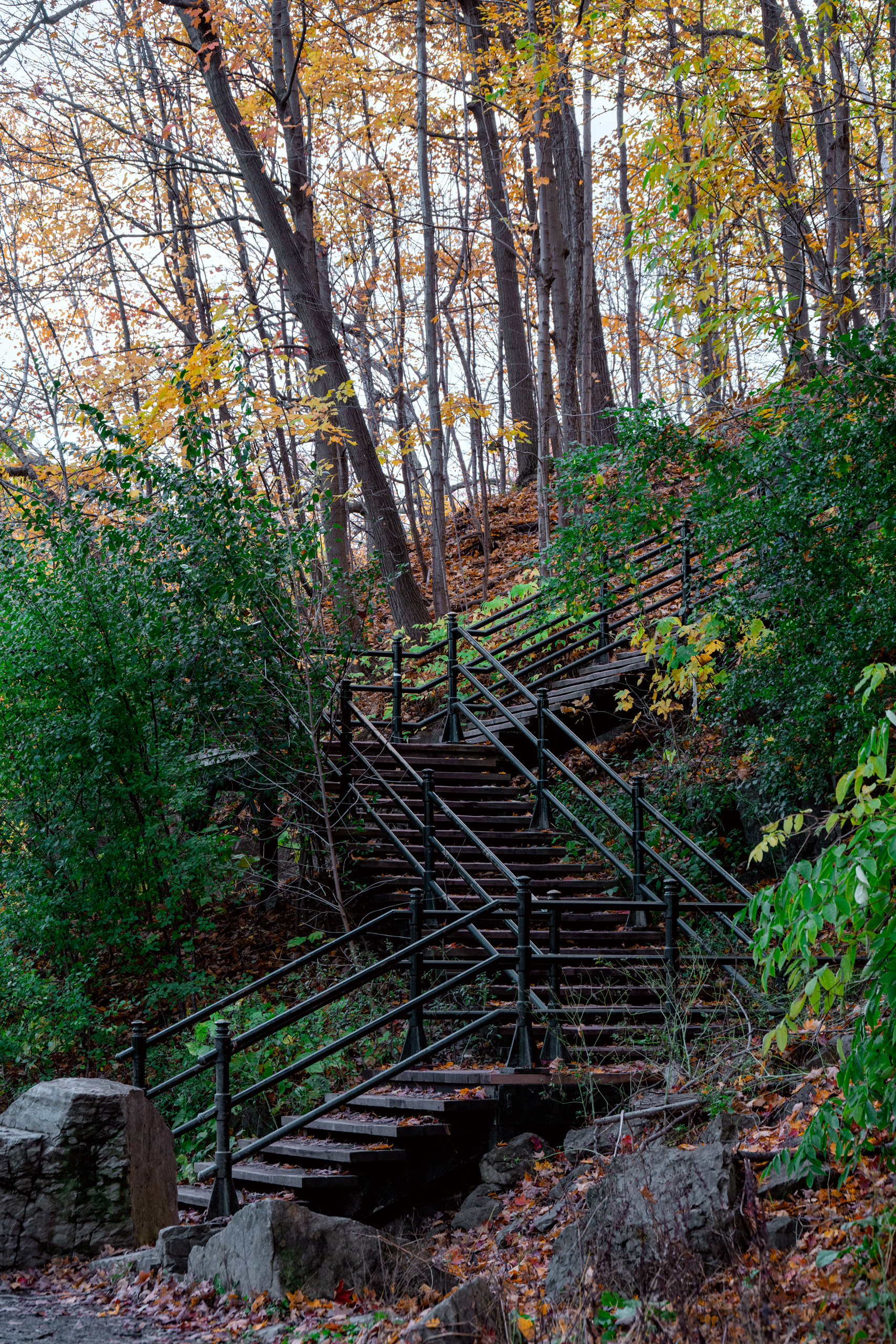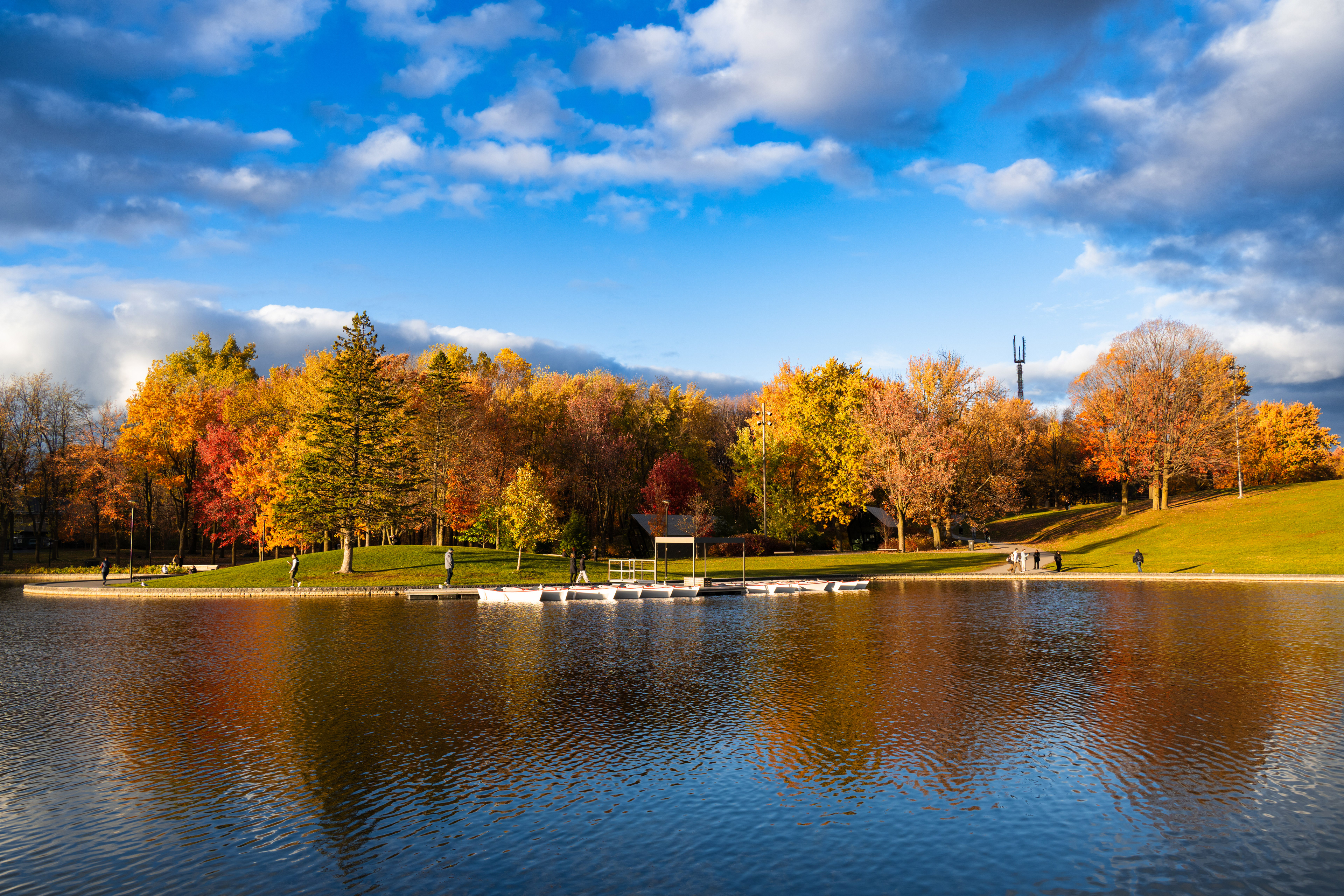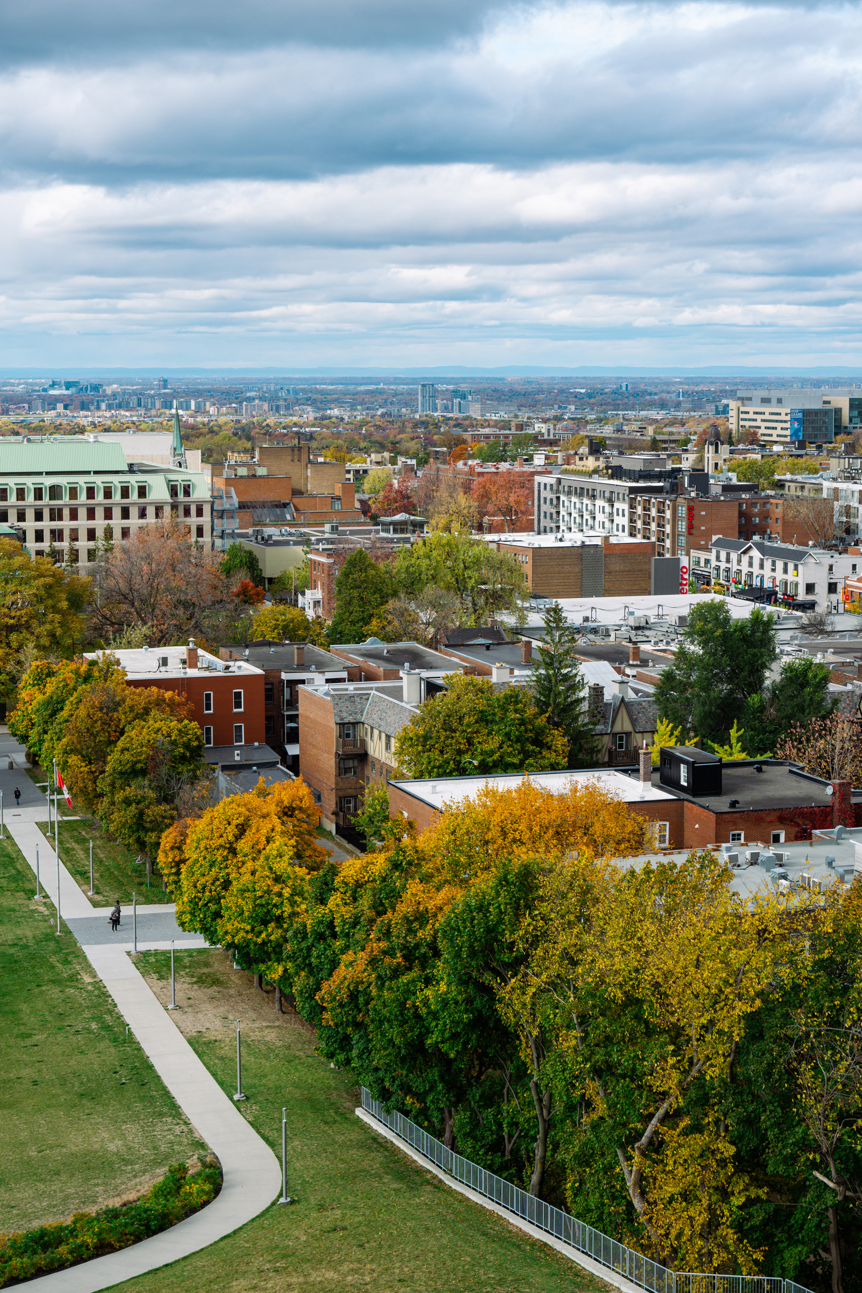 Mont Royal — the modest 233-meter hill that gives the city its name — is one of those places that quietly explains everything about where you are. Frederick Law Olmsted designed the park in 1876, which means yes, the same man who did Central Park also did this, and yes, he had a clear type. On the October morning we arrived, the summit lookout at Kondiaronk Belvedere was a full-on chromatic riot: sugar maples in neon orange, oaks in burgundy, birches doing their best impression of spun gold. The St. Lawrence River glinted silver below. My daughter demanded we circle the same bench three times for reasons known only to her.