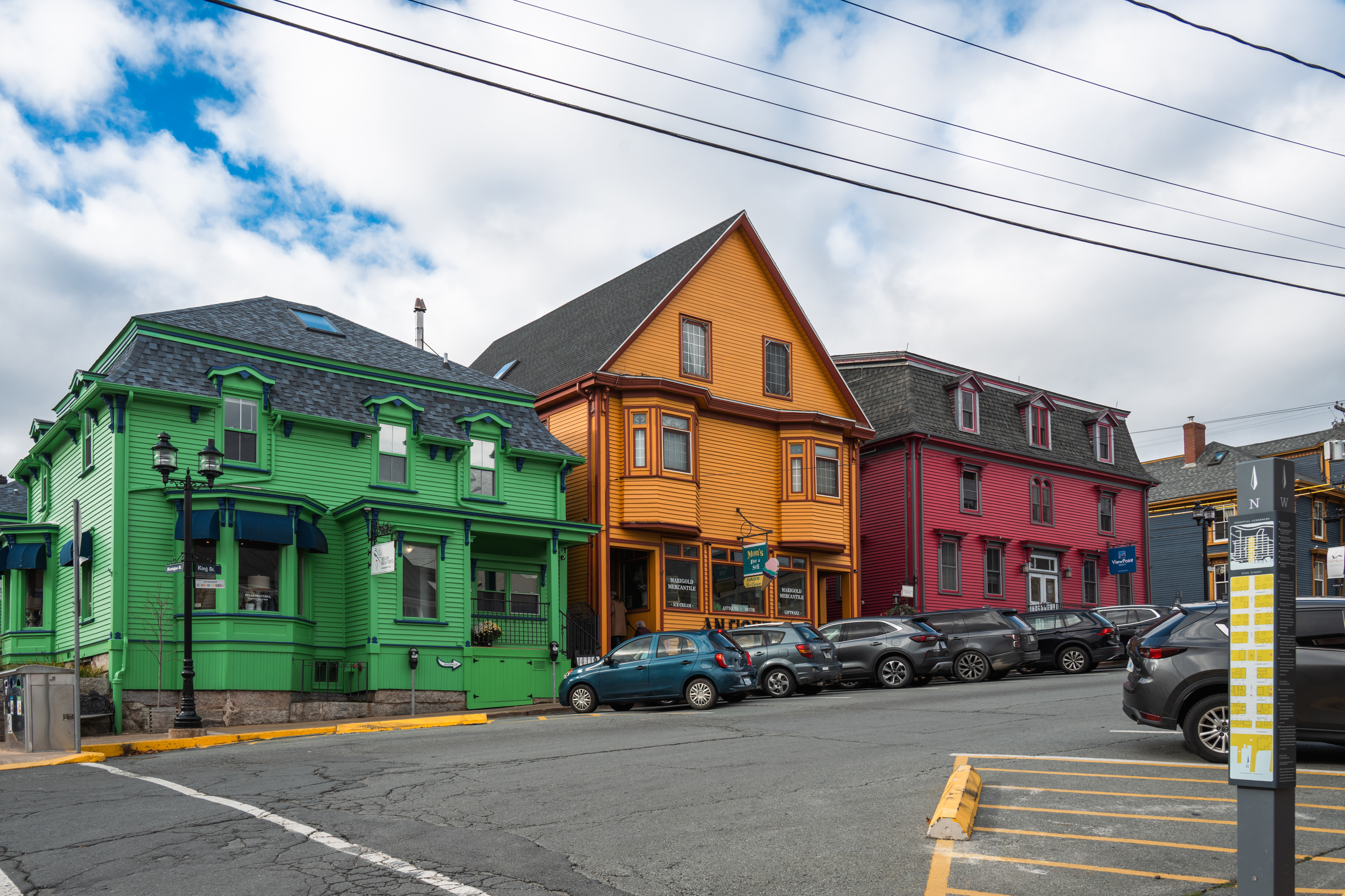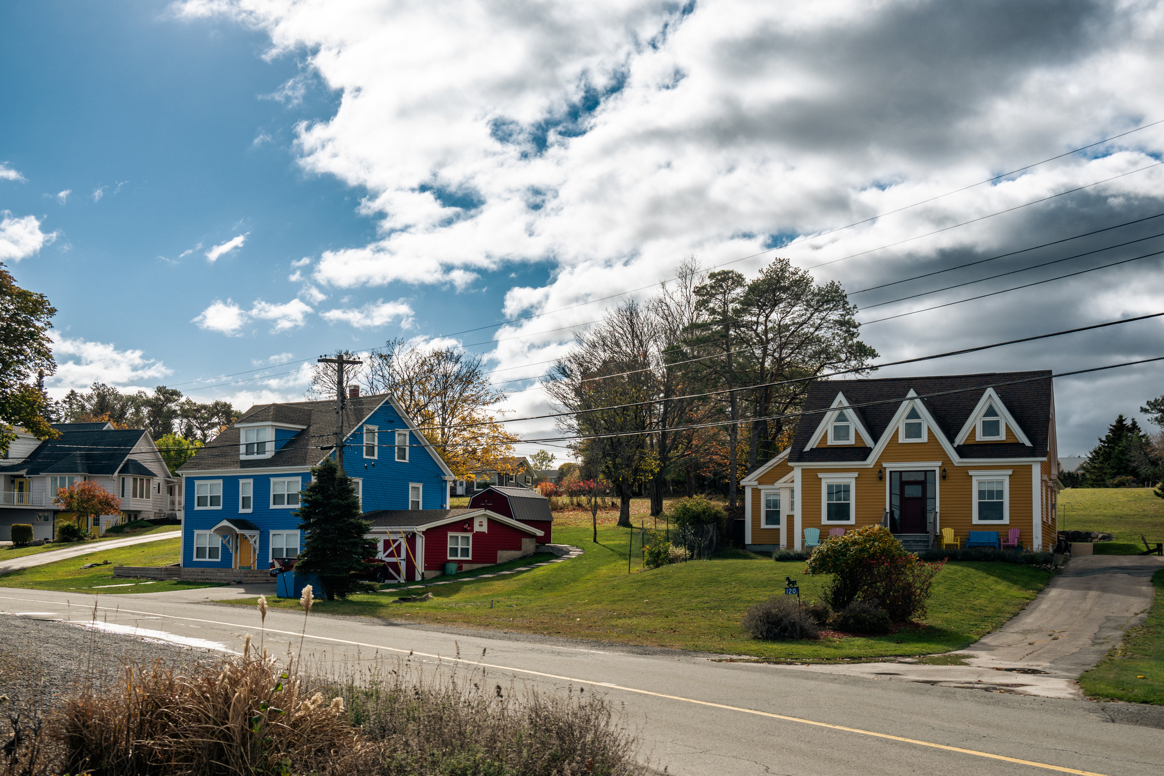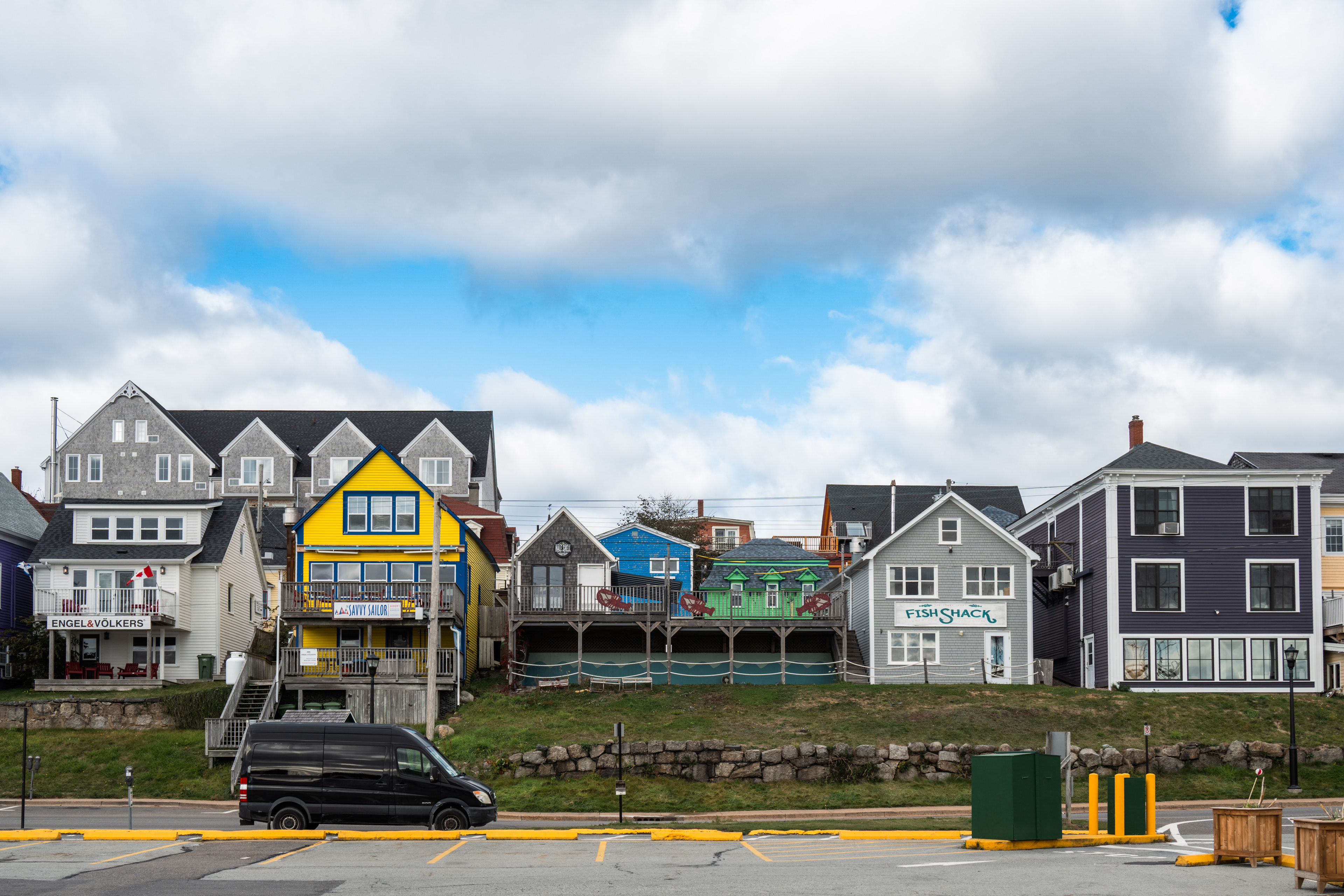 The houses are the thing. Lunenburg's "bump" dormers — a distinctive projecting upper window unique to the town — and its habit of painting every building a different saturated color (oxblood, mustard, forest green, navy) makes the streetscape look like a painting that someone kept adding to for two centuries. The whole thing sits on a peninsula between two harbors, which means you can always hear water.