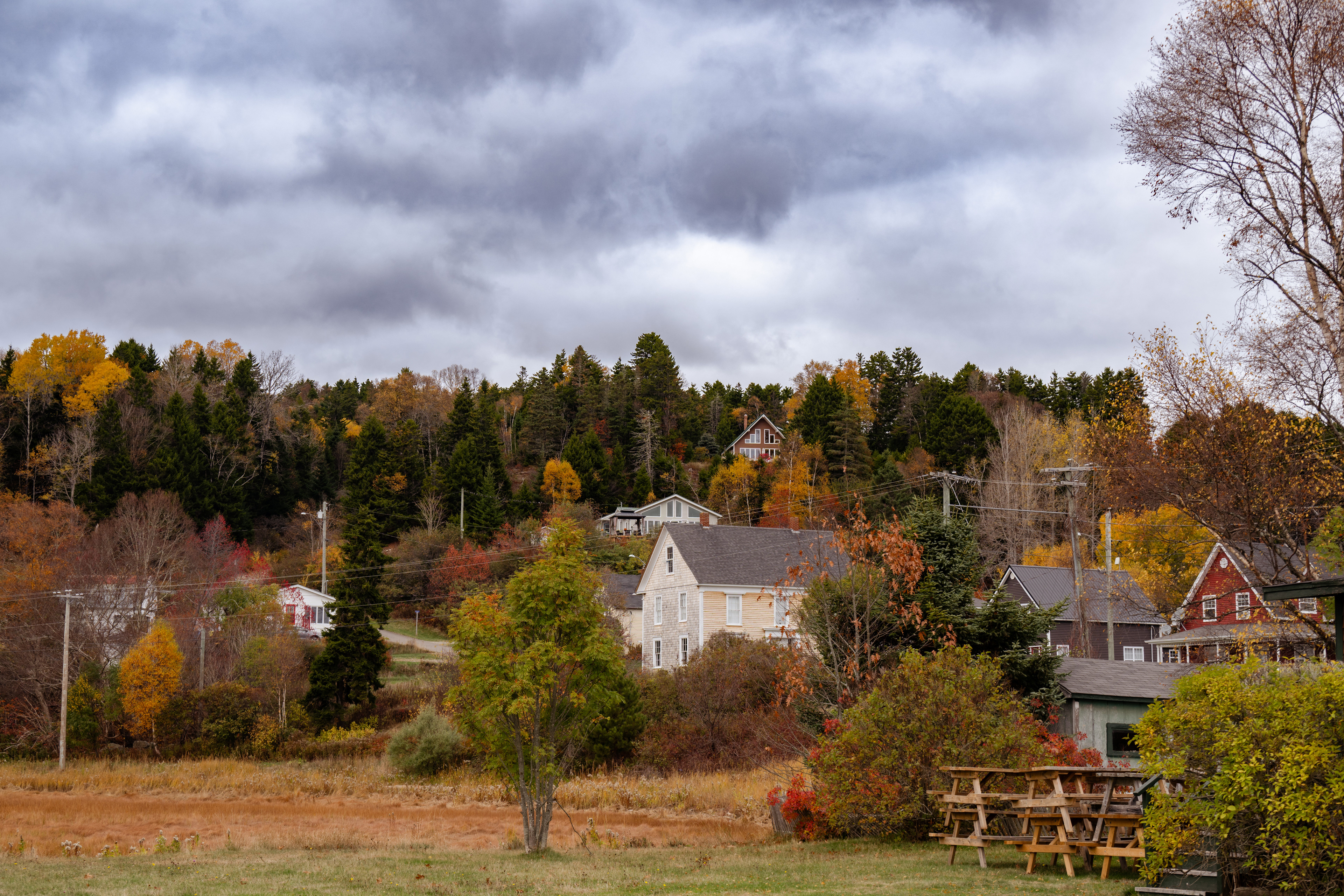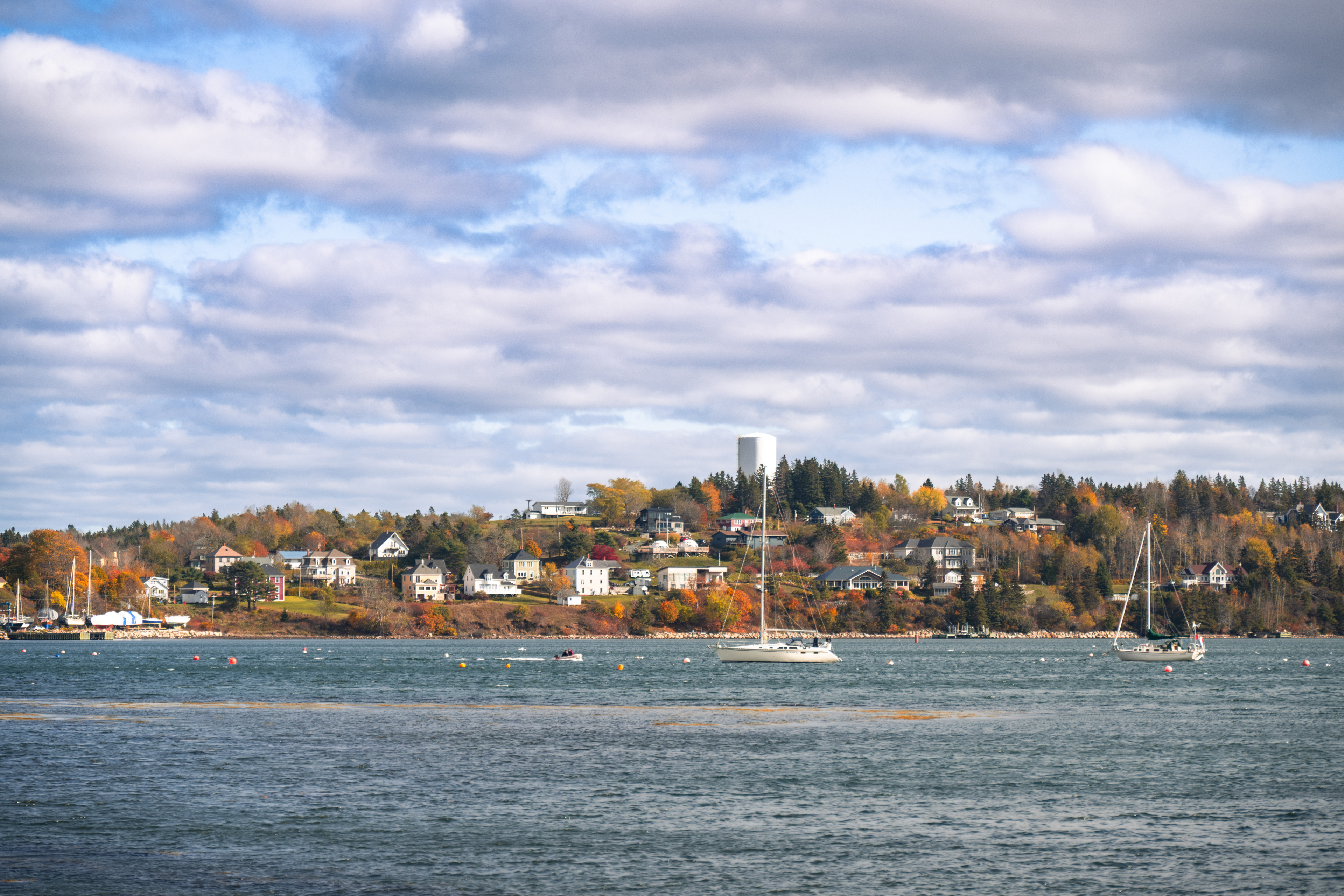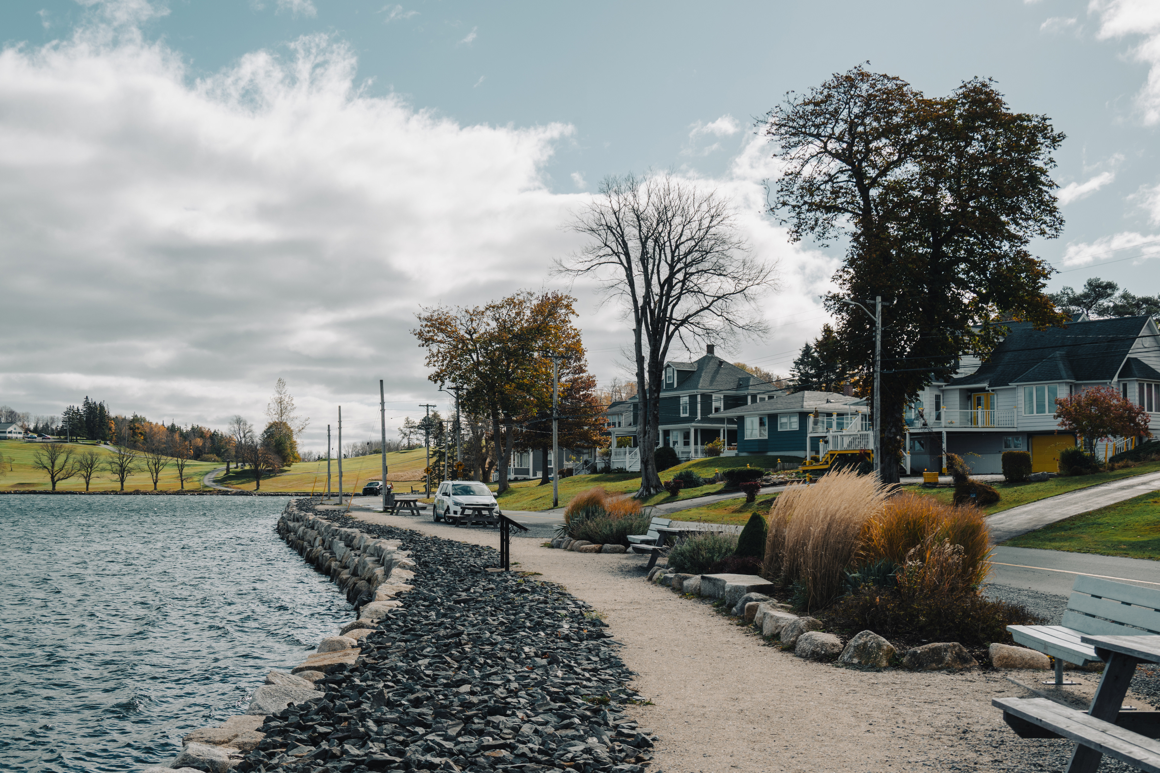 The houses are the thing. Lunenburg's "bump" dormers — a distinctive projecting upper window unique to the town — and its habit of painting every building a different saturated color (oxblood, mustard, forest green, navy) makes the streetscape look like a painting that someone kept adding to for two centuries. The whole thing sits on a peninsula between two harbors, which means you can always hear water.