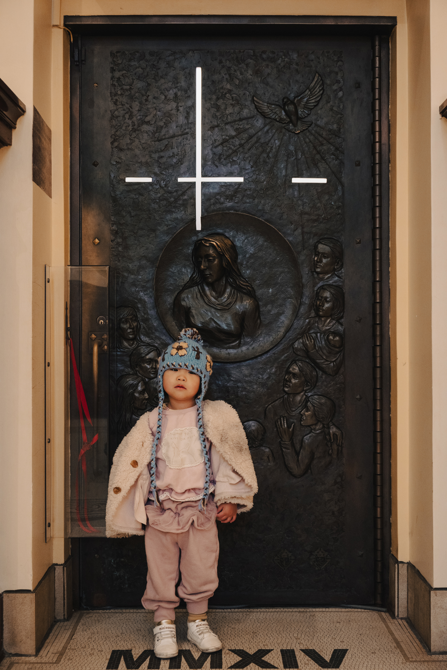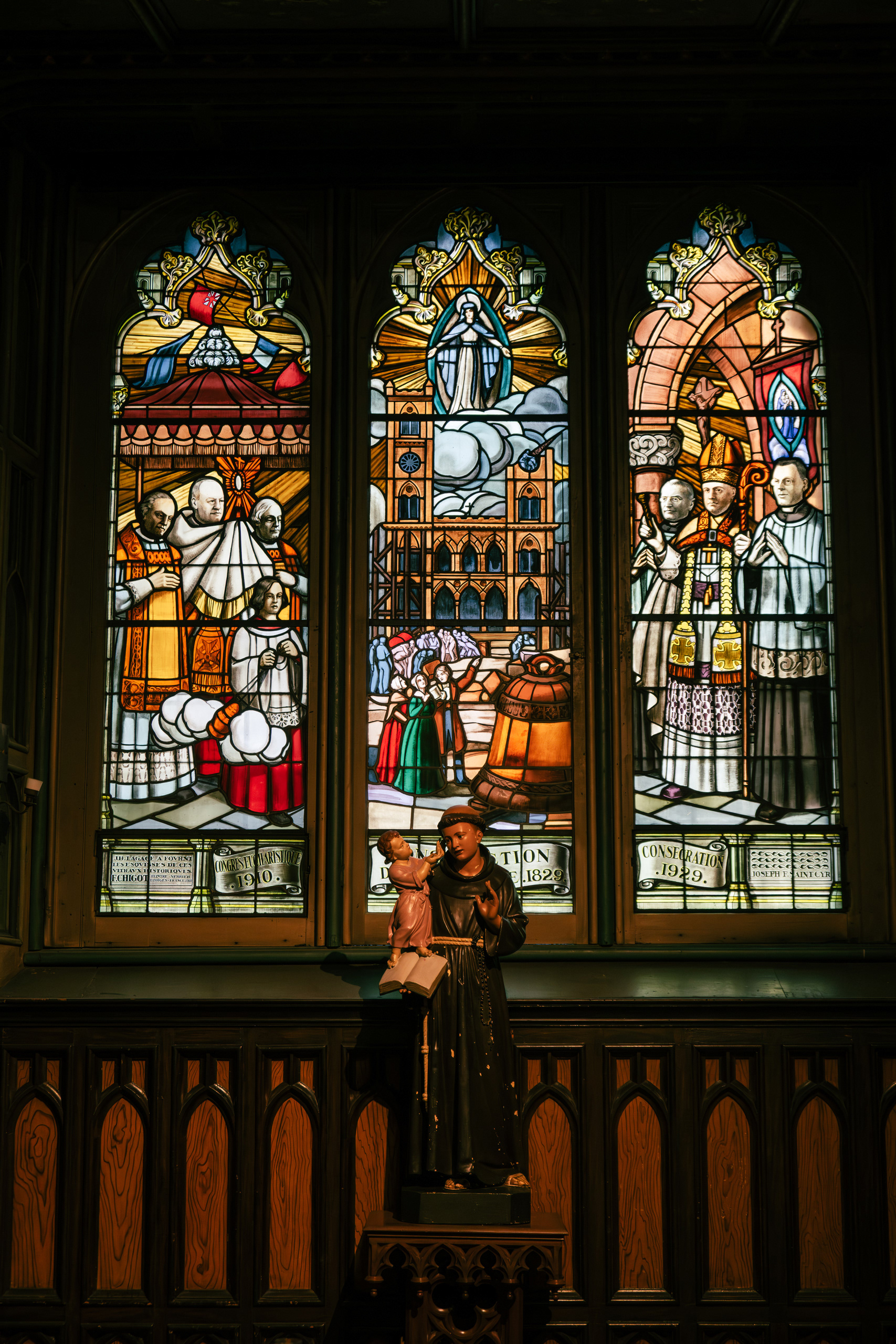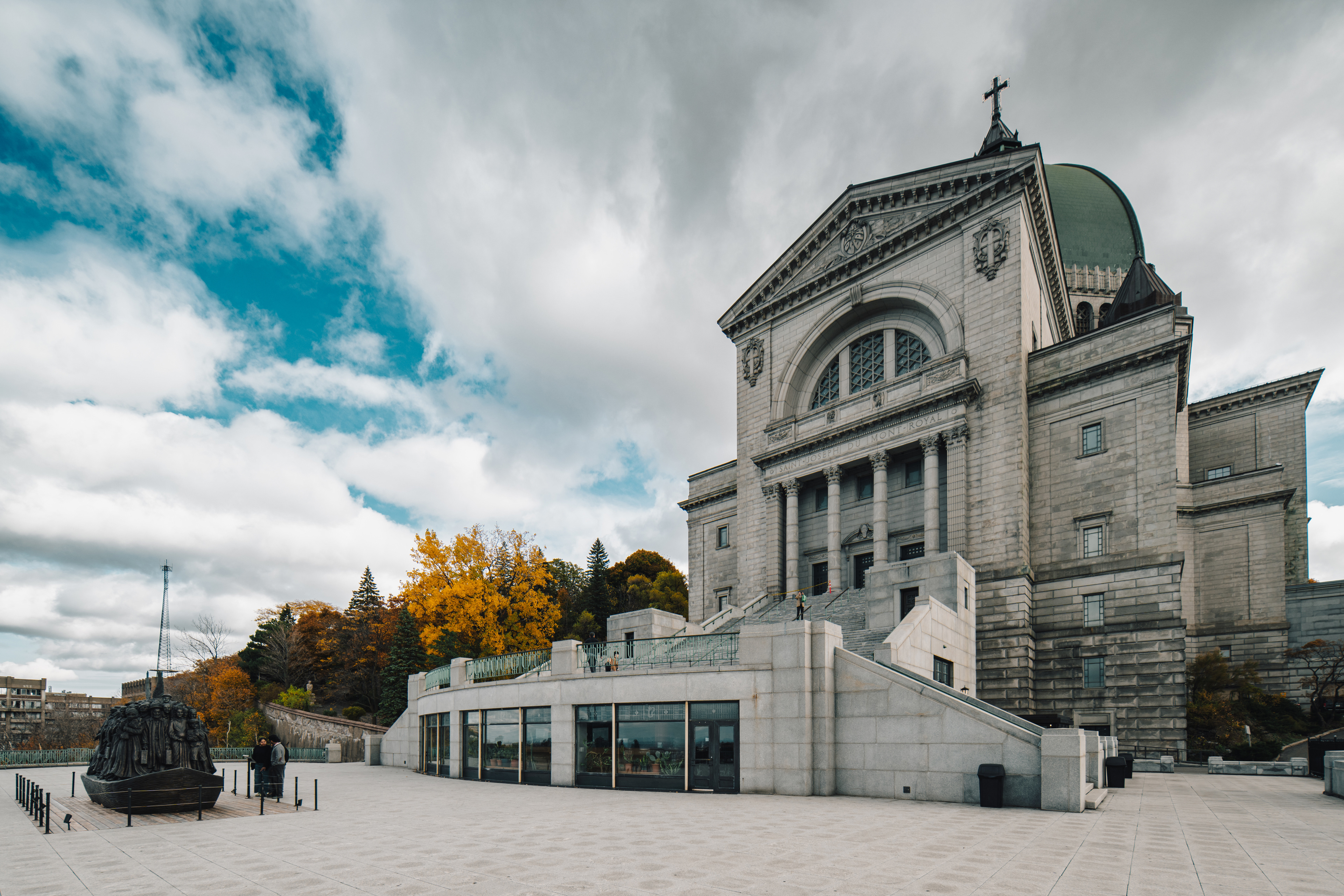 Saint Joseph's Oratory, clinging to the north slope of the mountain, is the more somber complement. The largest church in Canada — its copper dome is the second-largest in the world after St. Peter's in Rome — was built largely through the faith of a lay brother named Brother André, who reportedly healed thousands of sick pilgrims here between 1904 and his death in 1937. The walking sticks and crutches left behind by the cured still line the walls of the original chapel like a folk-art installation. My daughter found this less interesting than a pigeon outside. Fair enough.