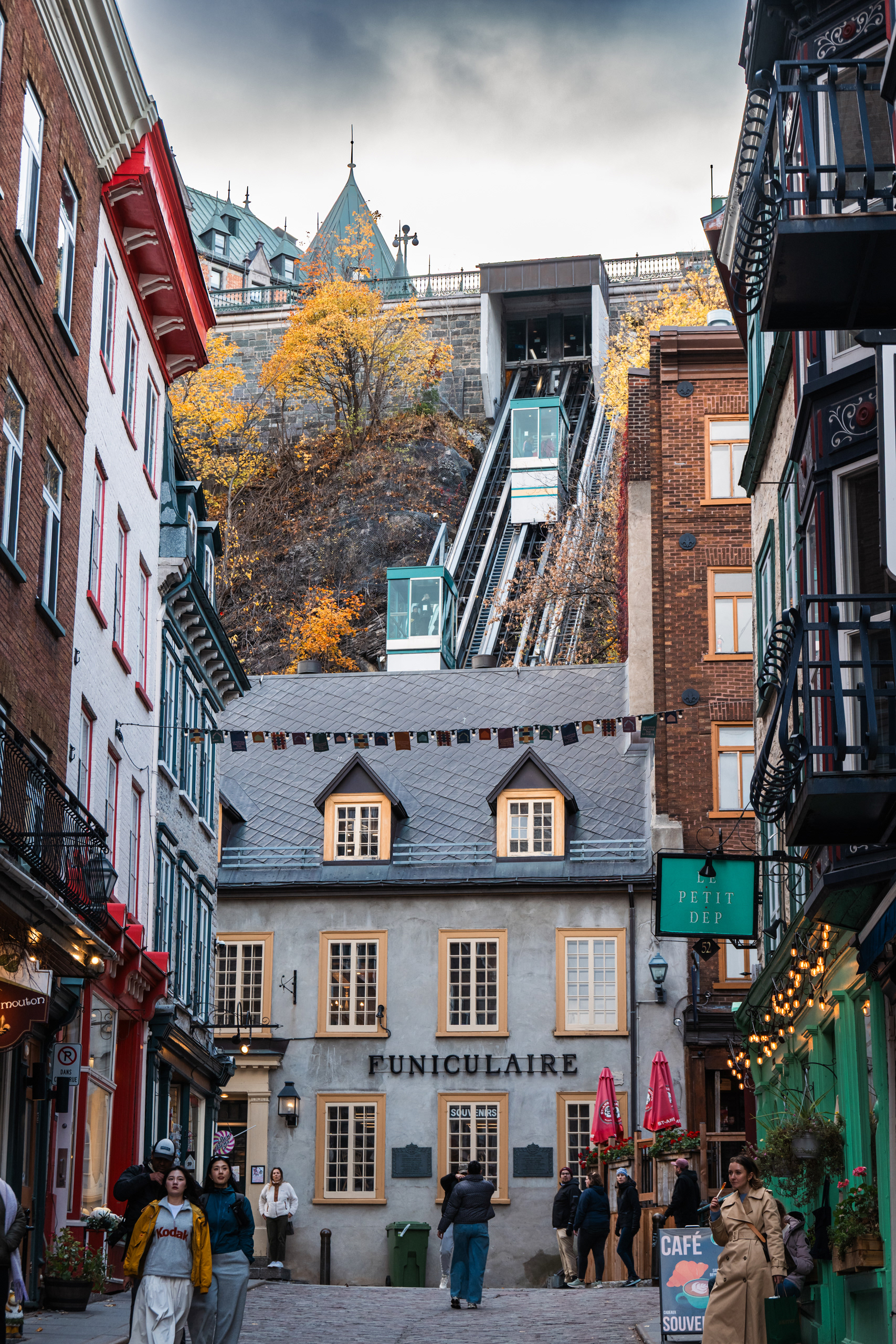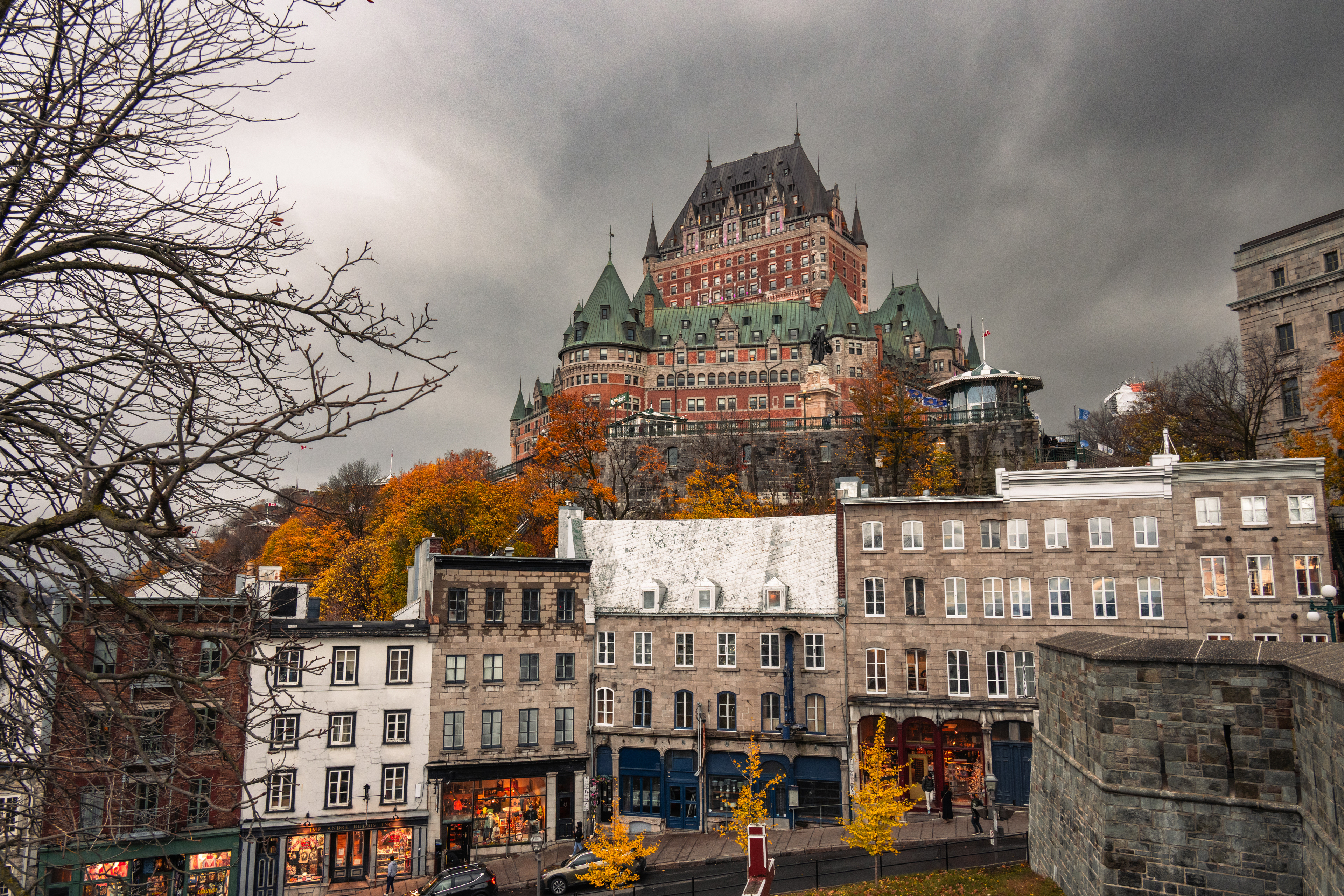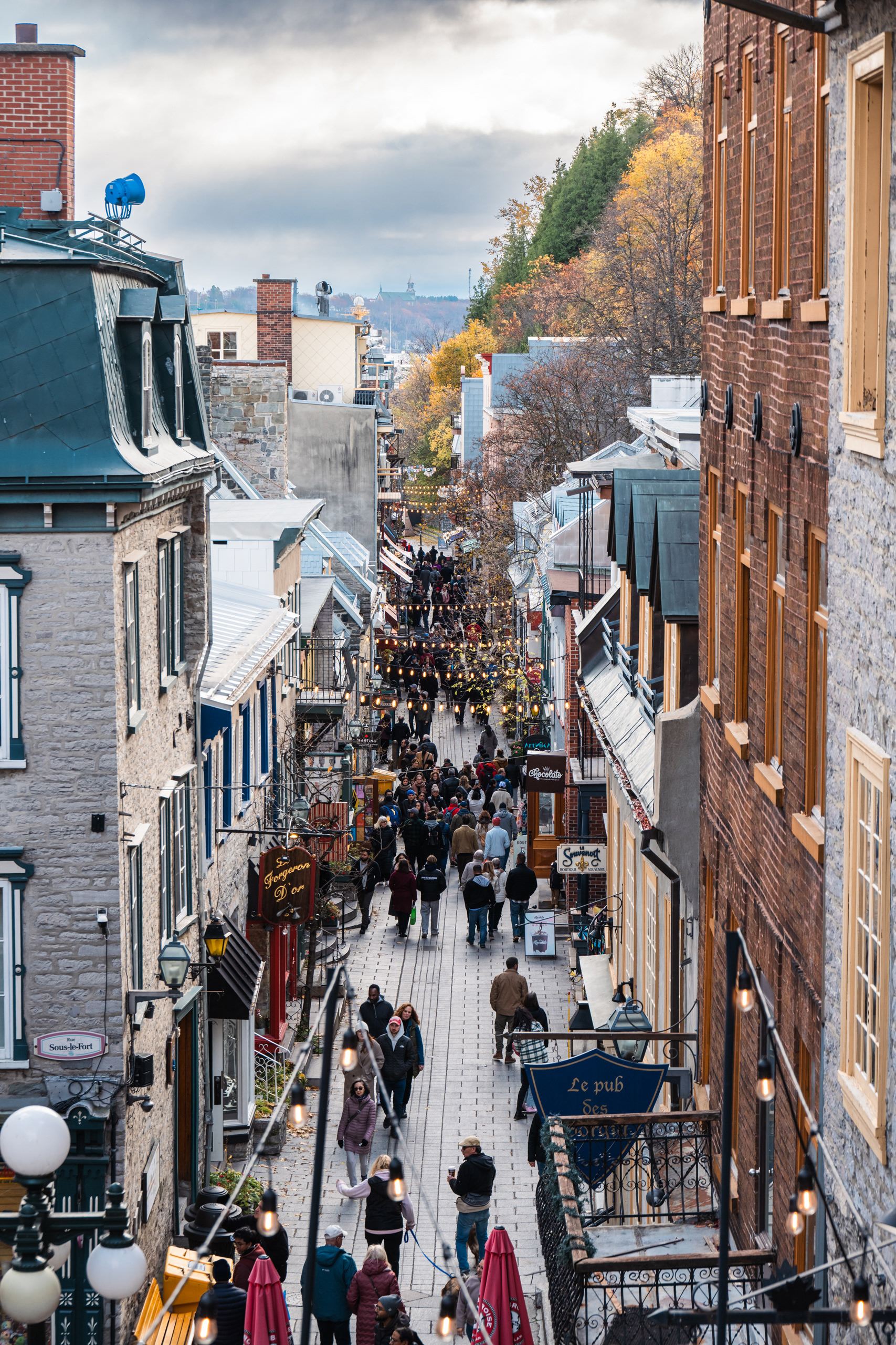 Rue du Petit-Champlain, the oldest commercial street in North America, descends by funicular from the upper city to the lower town and delivers you into a pedestrian quarter so photogenic in October that it constitutes mild aggression against anyone carrying a camera. The stone buildings date to the 17th century. The maple fudge from street vendors is unnecessary and mandatory.