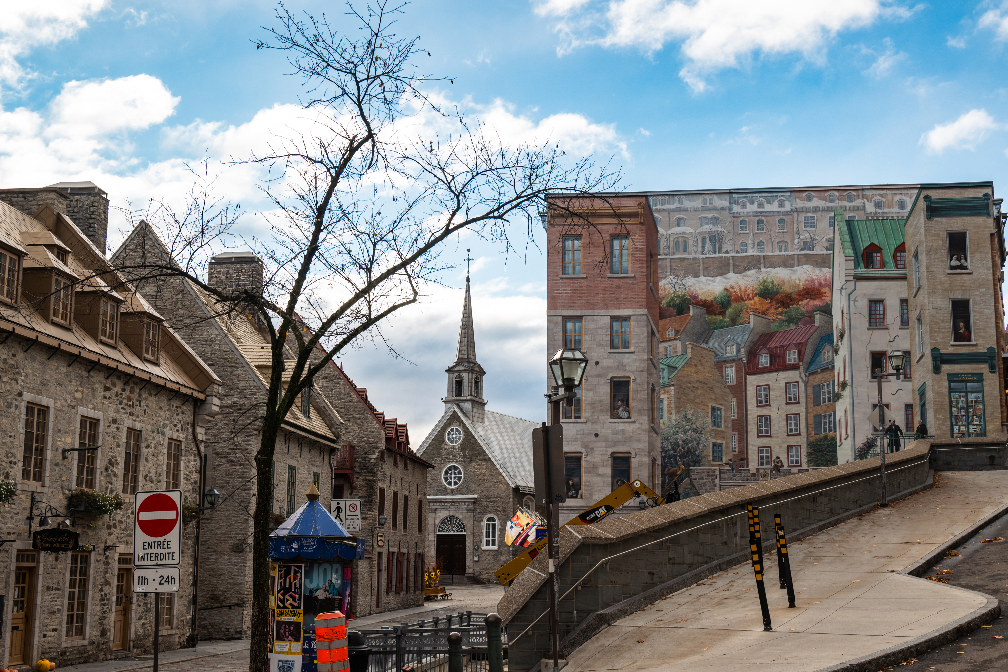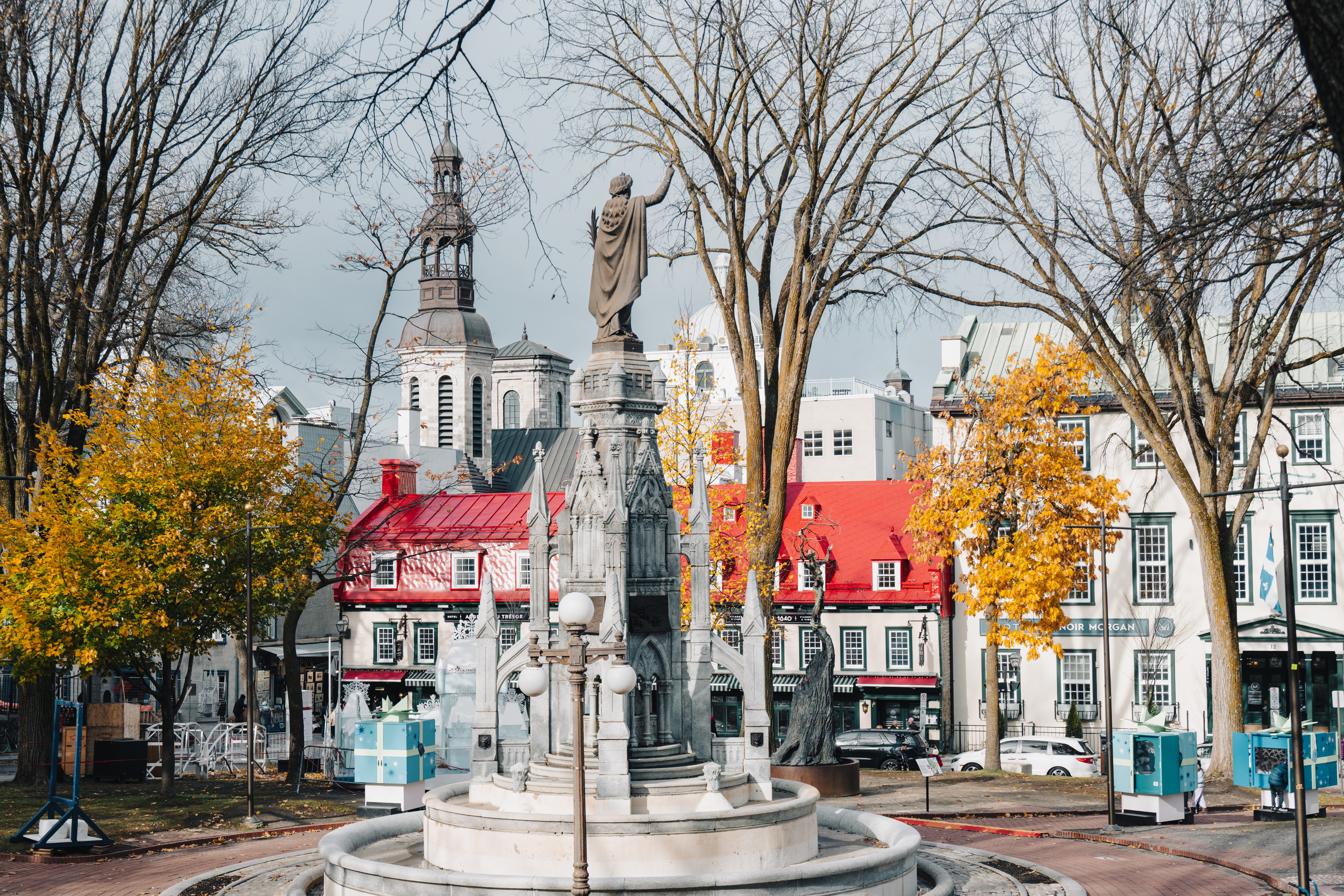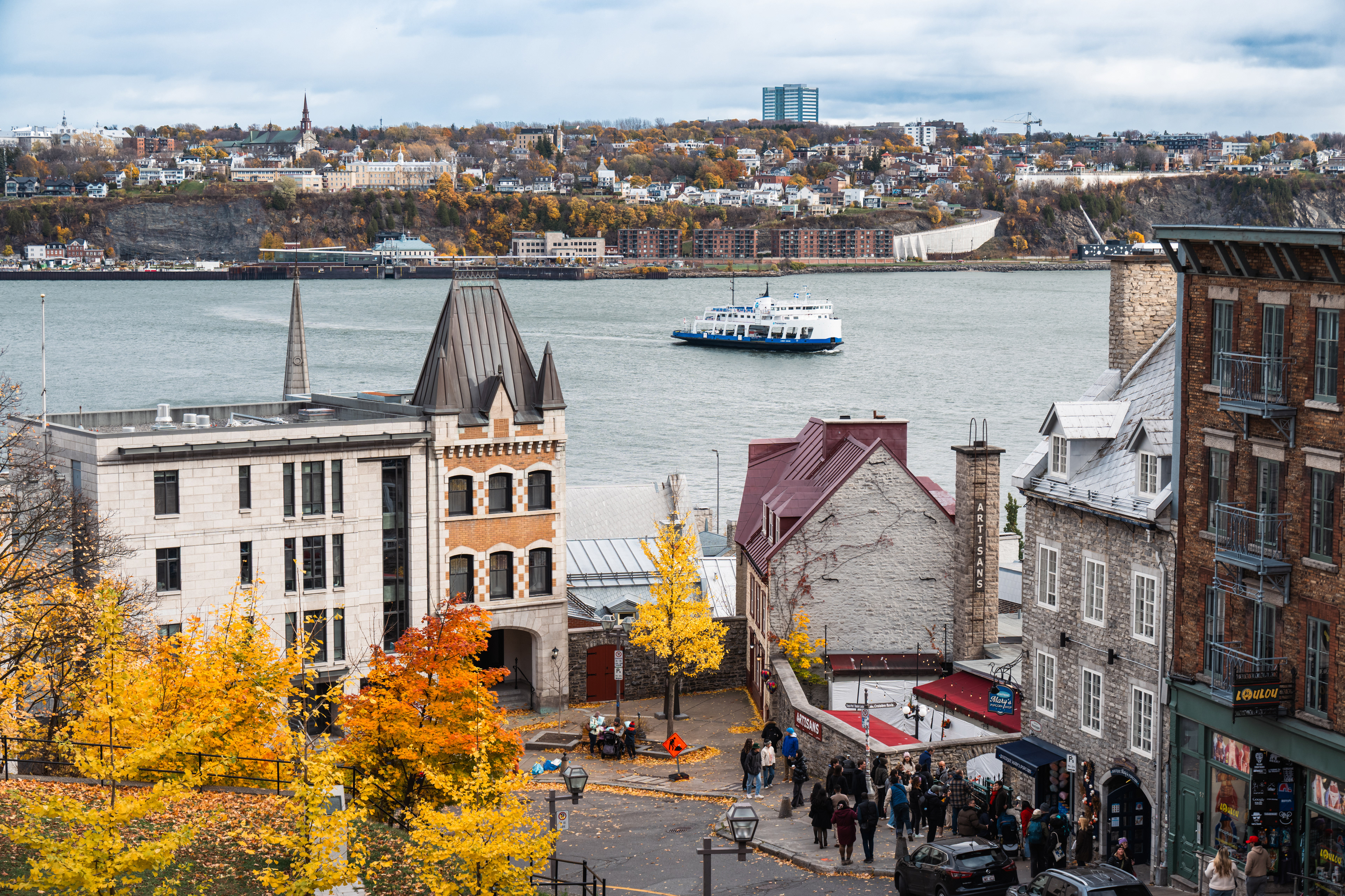 Rue du Petit-Champlain, the oldest commercial street in North America, descends by funicular from the upper city to the lower town and delivers you into a pedestrian quarter so photogenic in October that it constitutes mild aggression against anyone carrying a camera. The stone buildings date to the 17th century. The maple fudge from street vendors is unnecessary and mandatory.