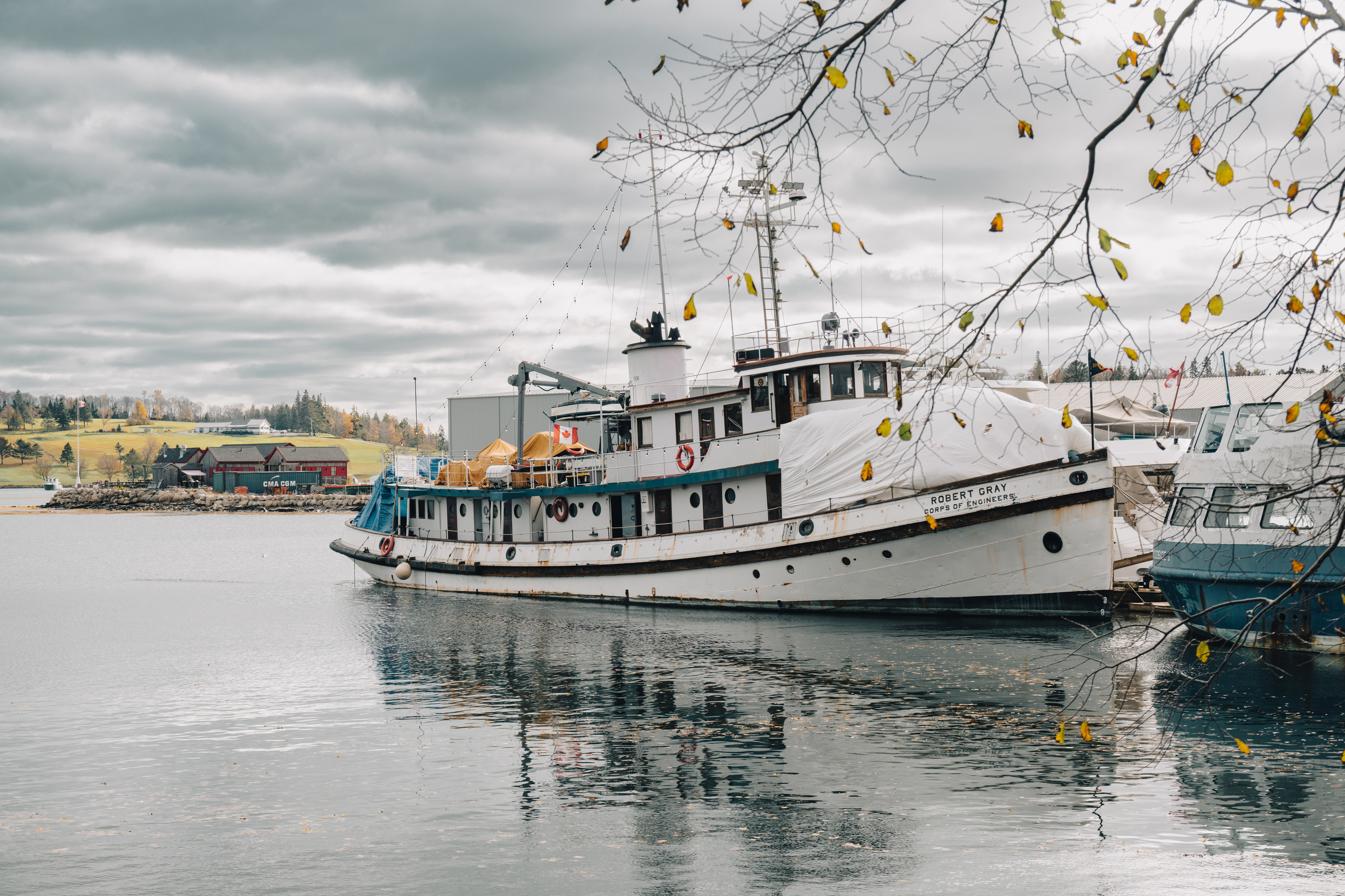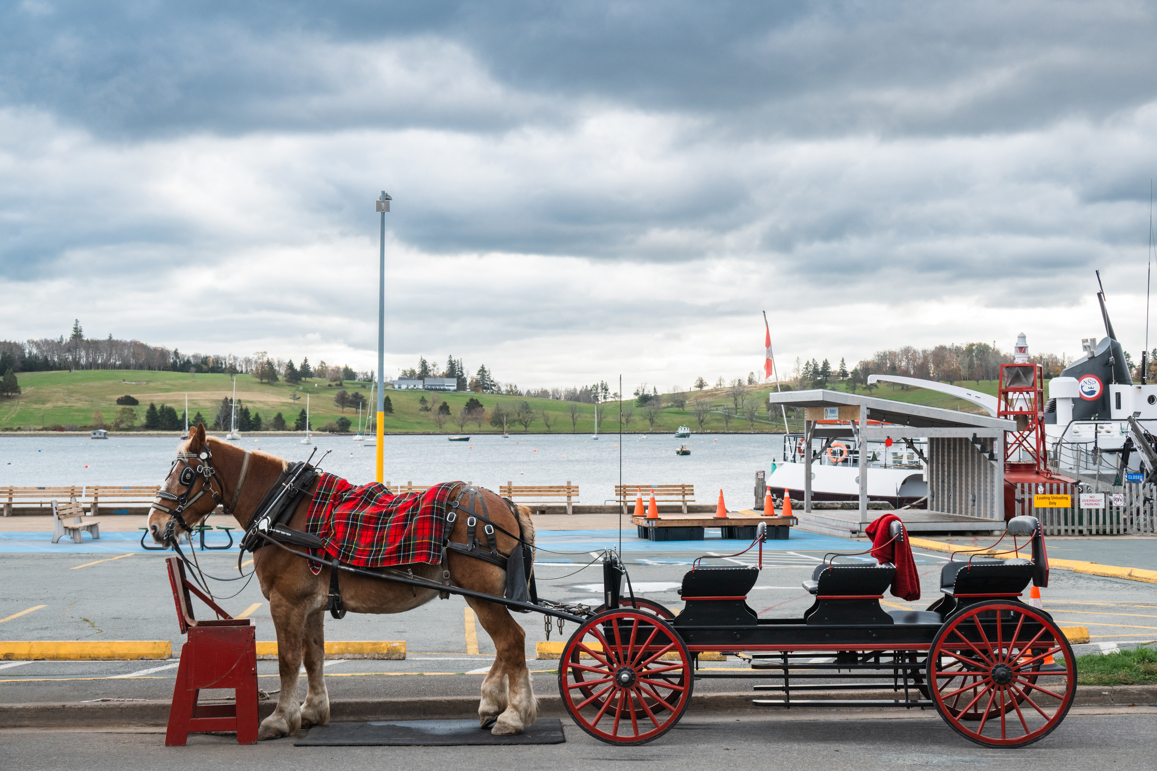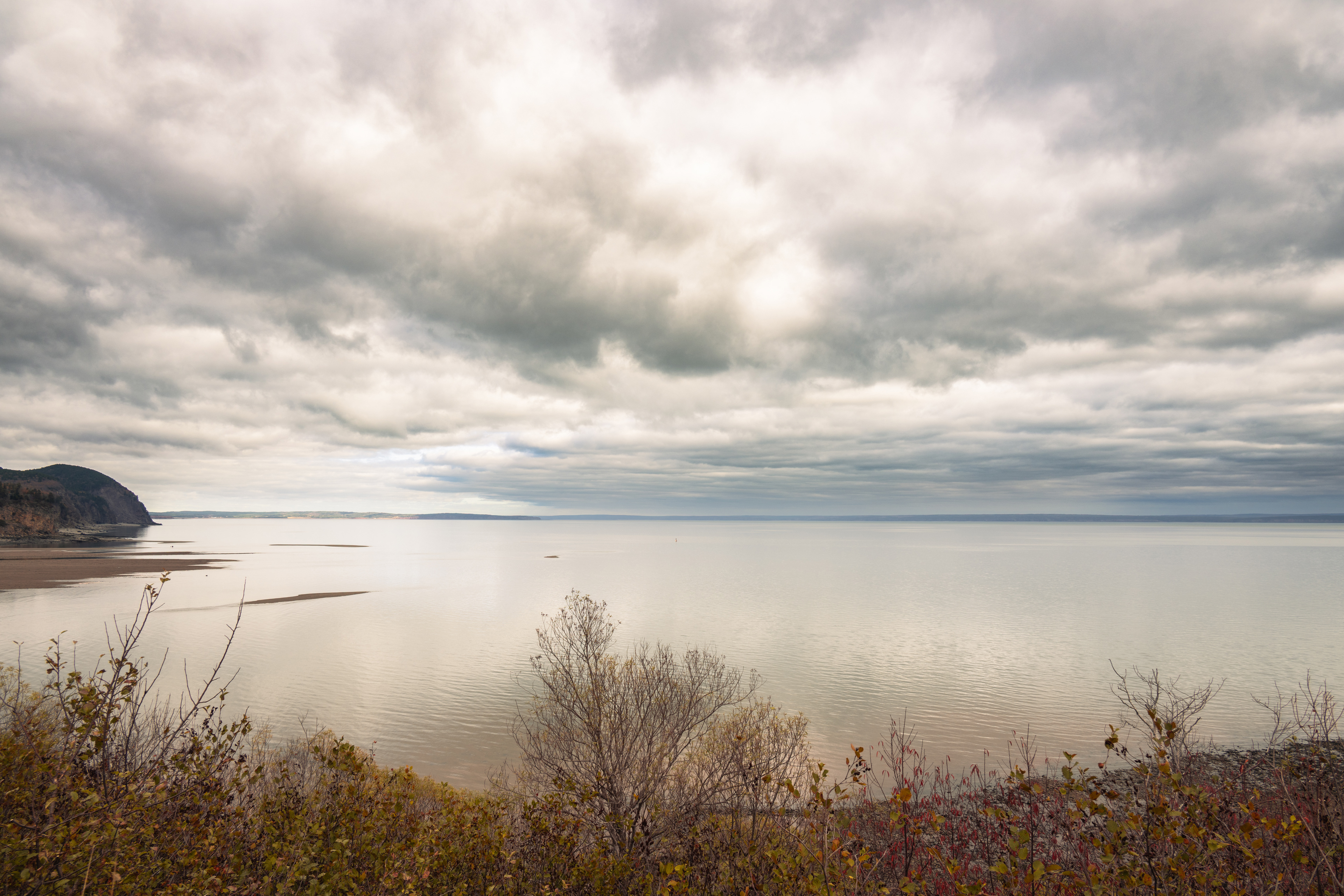 First, the Bay Ferries crossing from Saint John to Digby. The MV Fundy Rose makes the 74-kilometer crossing in about two hours, running straight across the bay's mouth. On an October morning with low clouds and flat grey water, the ferry feels less like transportation and more like a meditation on scale. Somewhere in the middle, you lose sight of both shores simultaneously, and for a few minutes there's nothing but ocean in every direction. I stood at the bow and thought about Samuel de Champlain, who crossed these same waters in 1604 and drew maps that are remarkably accurate given that he was doing it by eye from a wooden boat.