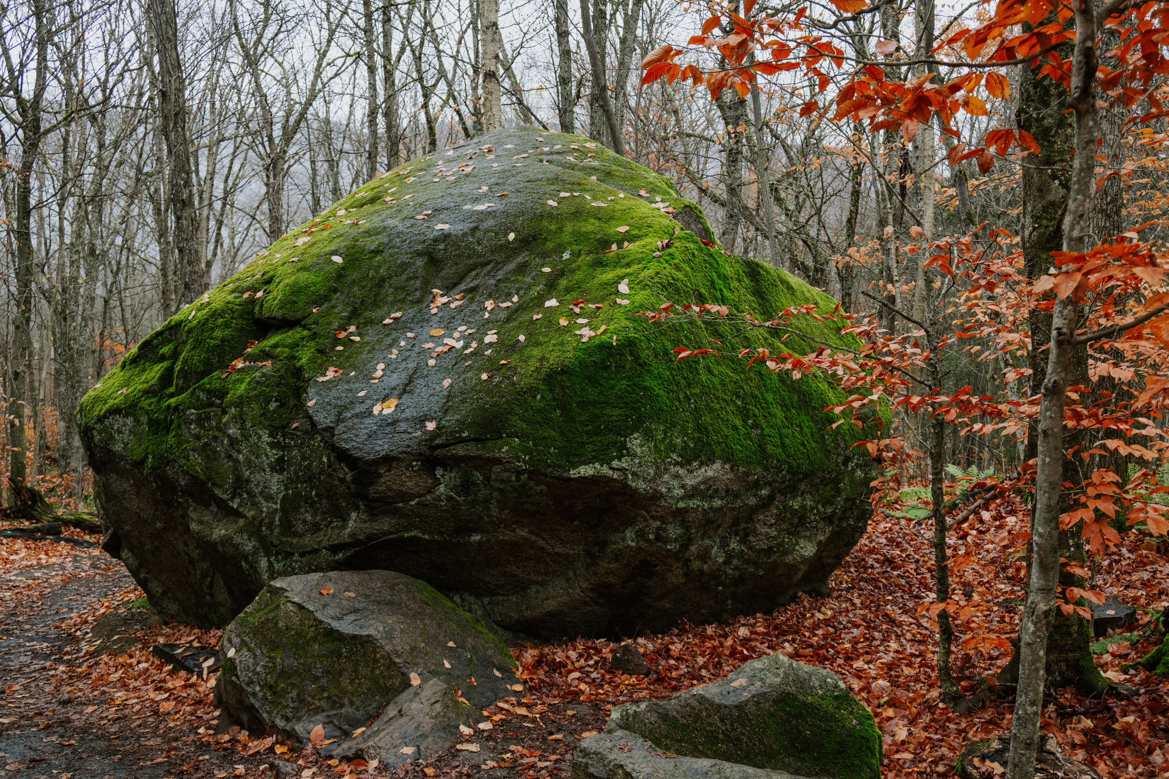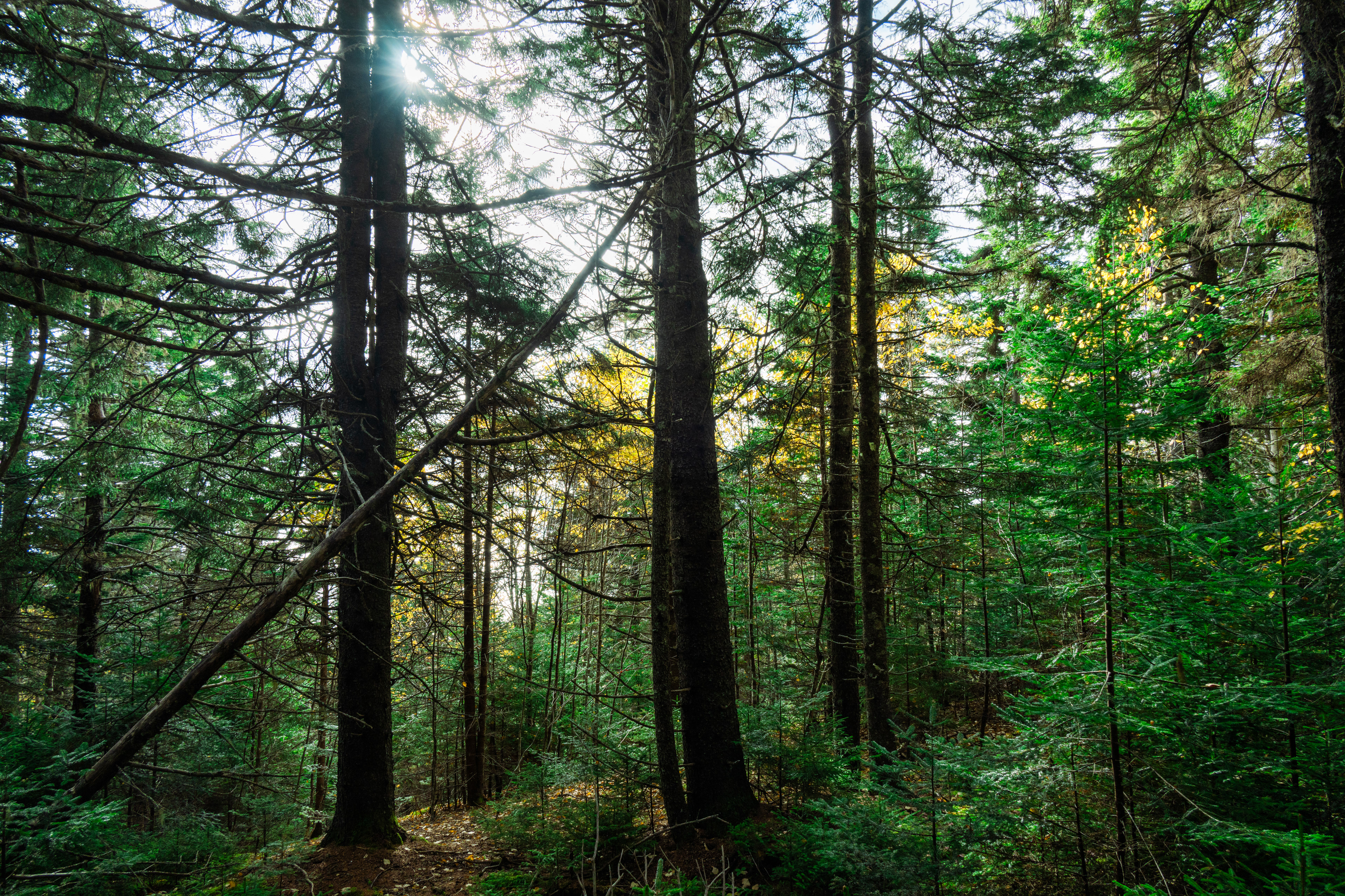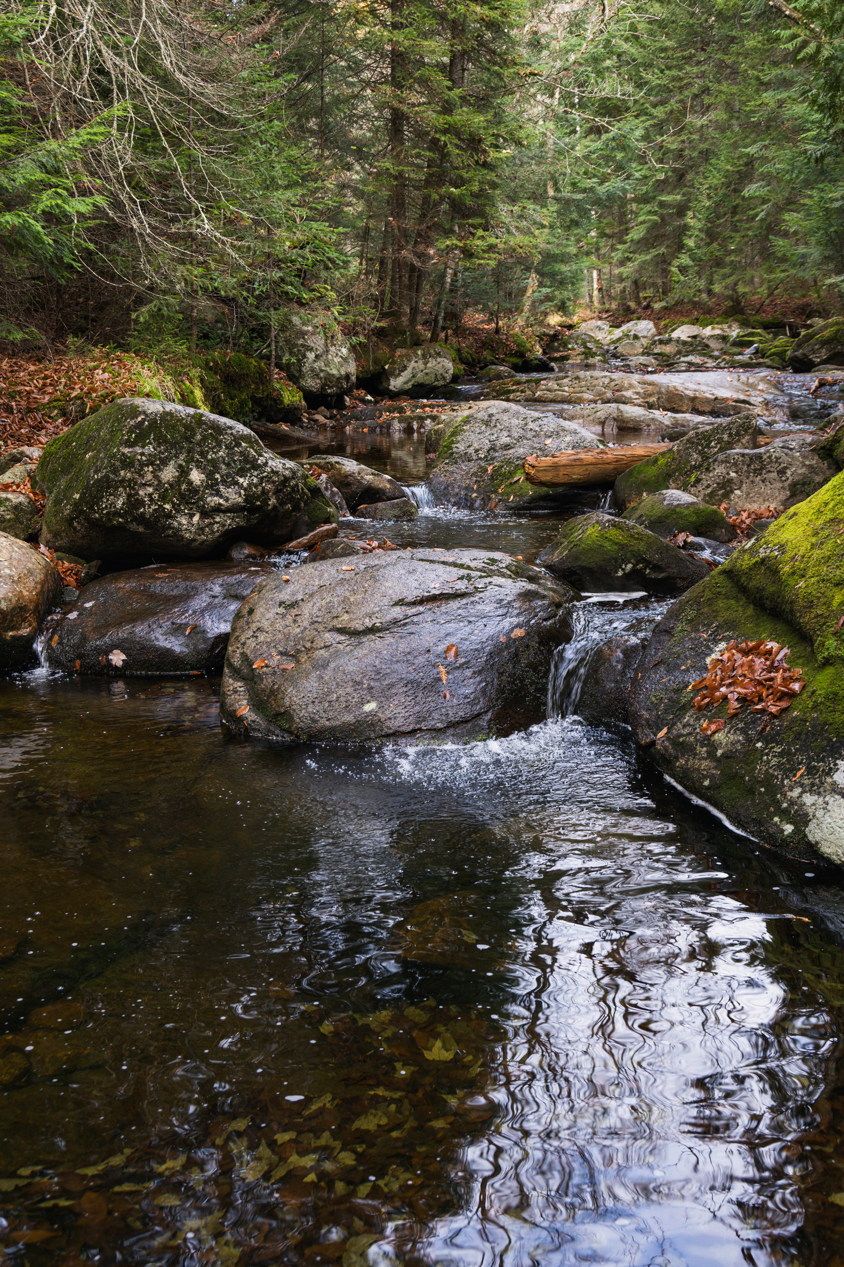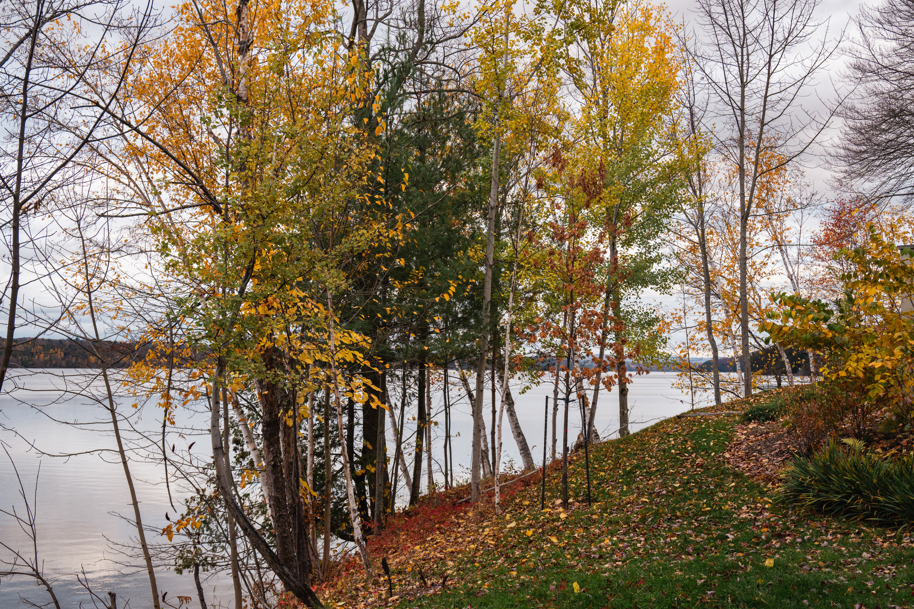 The real payoff was La Corniche and La Roche Loop in Parc national du Mont-Tremblant. The trail gains enough elevation quickly enough that by the time you reach the rocky viewpoint, the valley below has arranged itself into a mosaic that would make a landscape photographer cry. Which, being a landscape photographer, I briefly did. October light at that latitude hits at an angle that makes everything look like it's being viewed through amber glass.