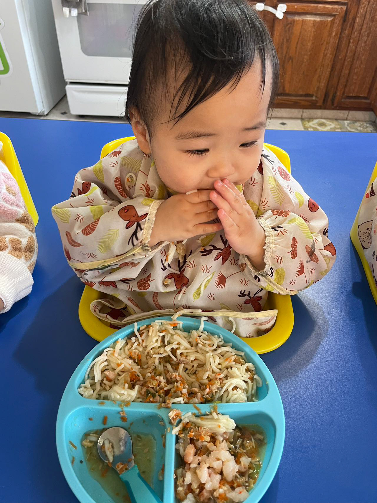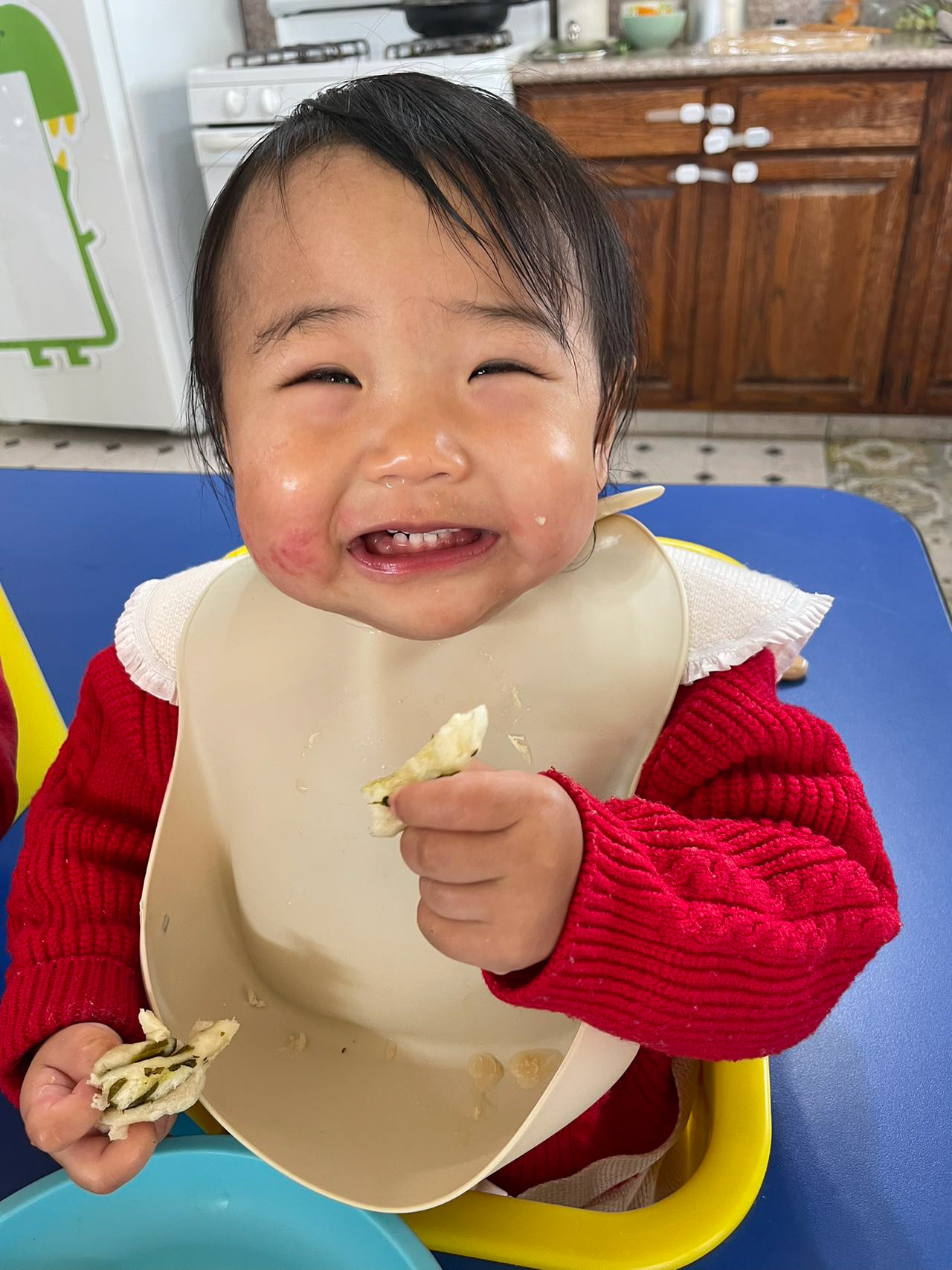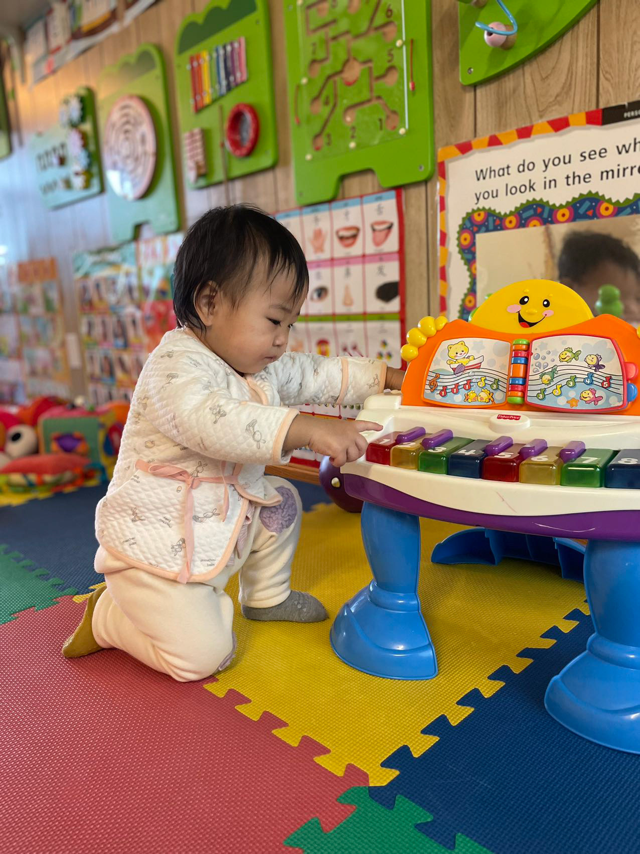 Beyond our home, a new chapter of discovery began for Luna at Qing's Family Daycare. The name, inspired by the ancient Chinese poem "青青园中葵,朝露待日晞" (Green, green grows the mallow in the garden, awaiting the morning dew to dry in the sun), perfectly encapsulates the essence of this special place. Like young mallow plants in a vibrant garden, each child here is nurtured, encouraged to flourish, and gently prepared for the world ahead.