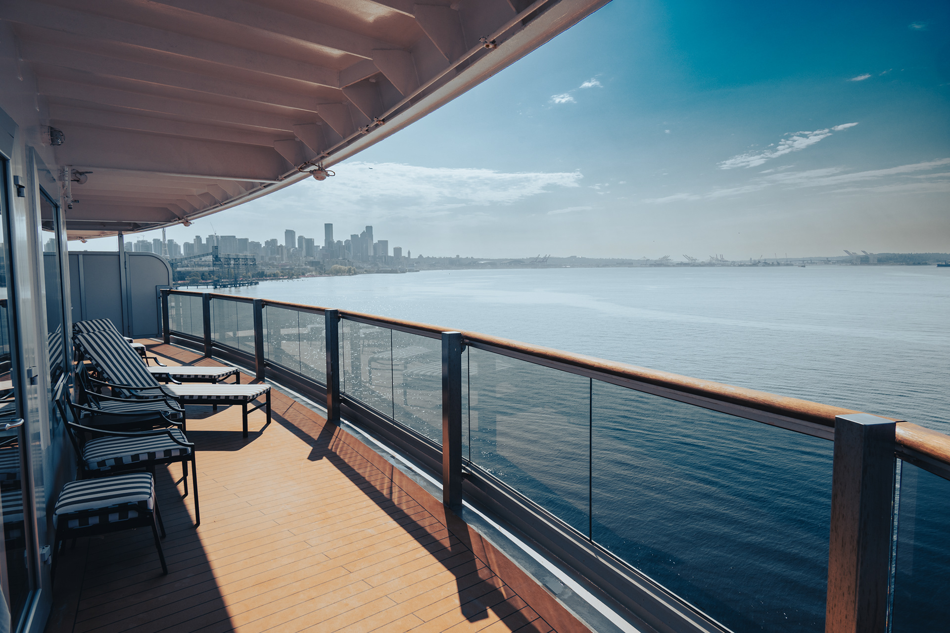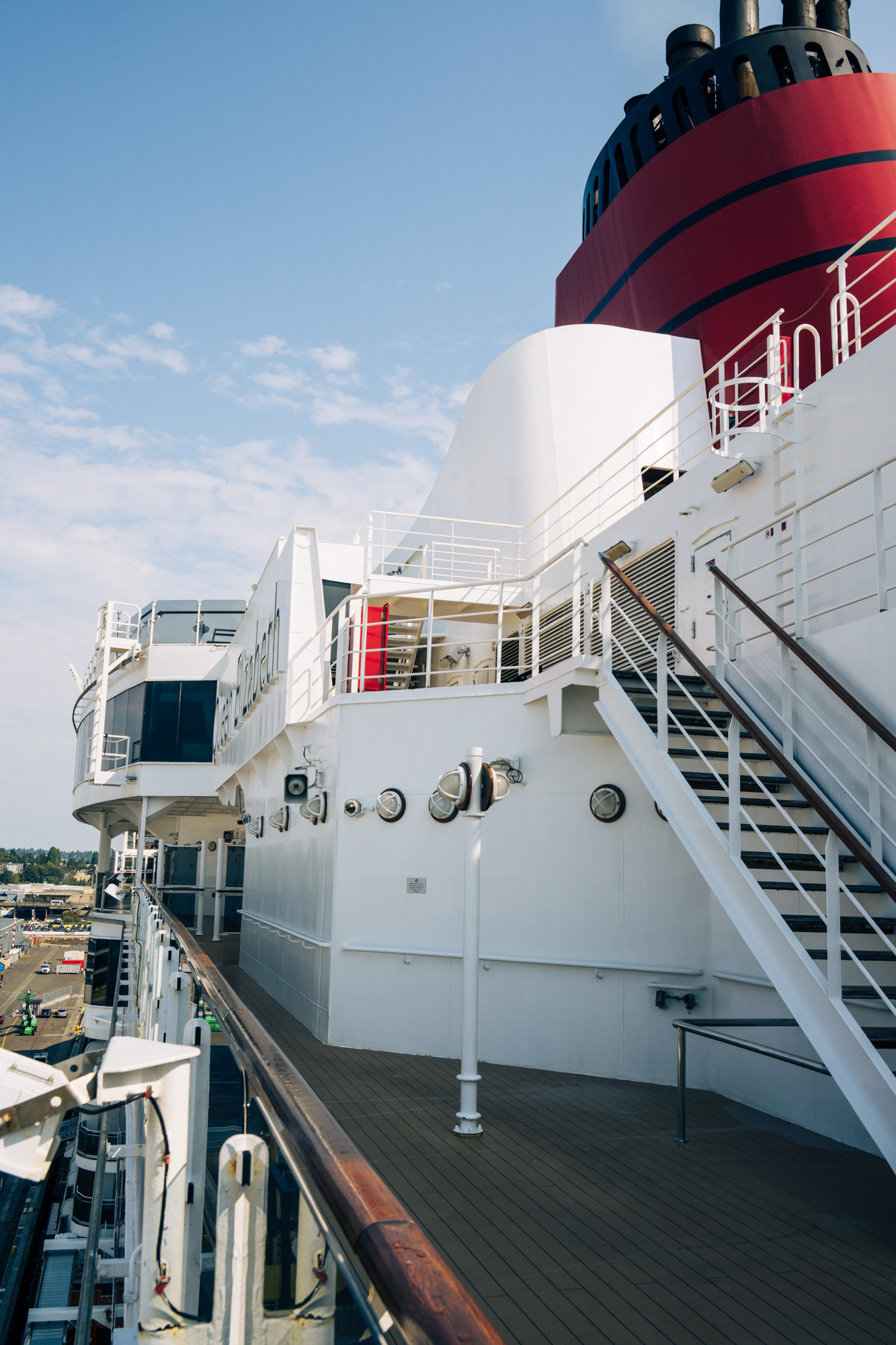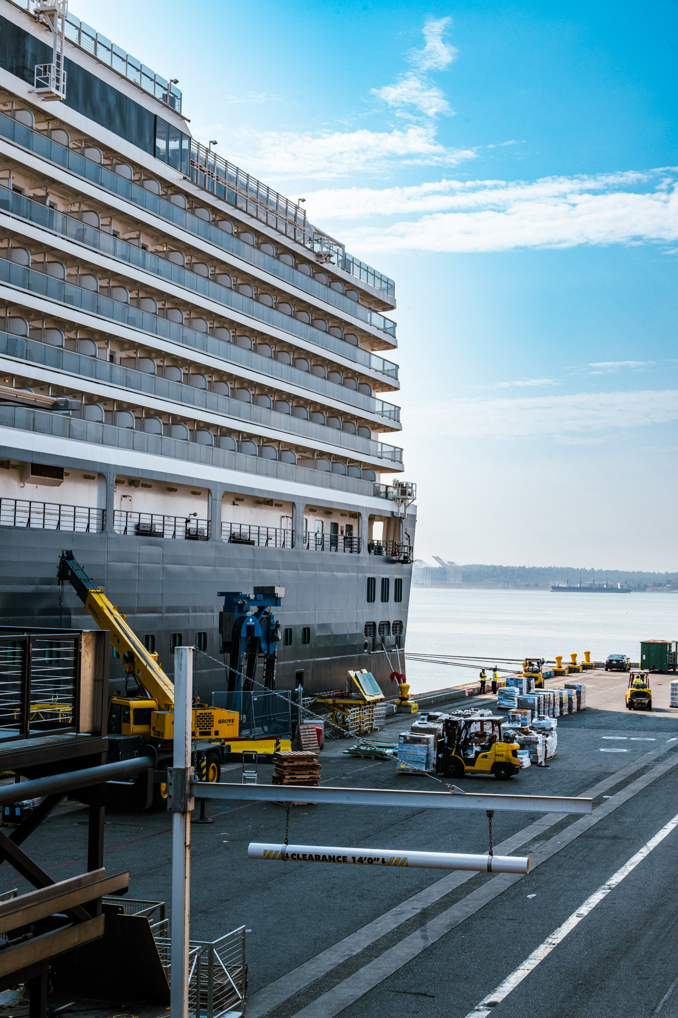 Docked at Seattle’s scenic waterfront, the Queen Elizabeth makes a regal impression against the Pacific Northwest backdrop. As a member of the Vista class, this ship is a tribute to the "Golden Age" of ocean travel—evoking the elegance of the 1930s with its Art Deco interiors and striking black hull. With 12 passenger decks and a capacity for 2,081 guests, the ship feels intimate yet grand, boasting a royal connection unmatched by any other line; its godmother was none other than Her Majesty Queen Elizabeth II, who named the ship in 2010.