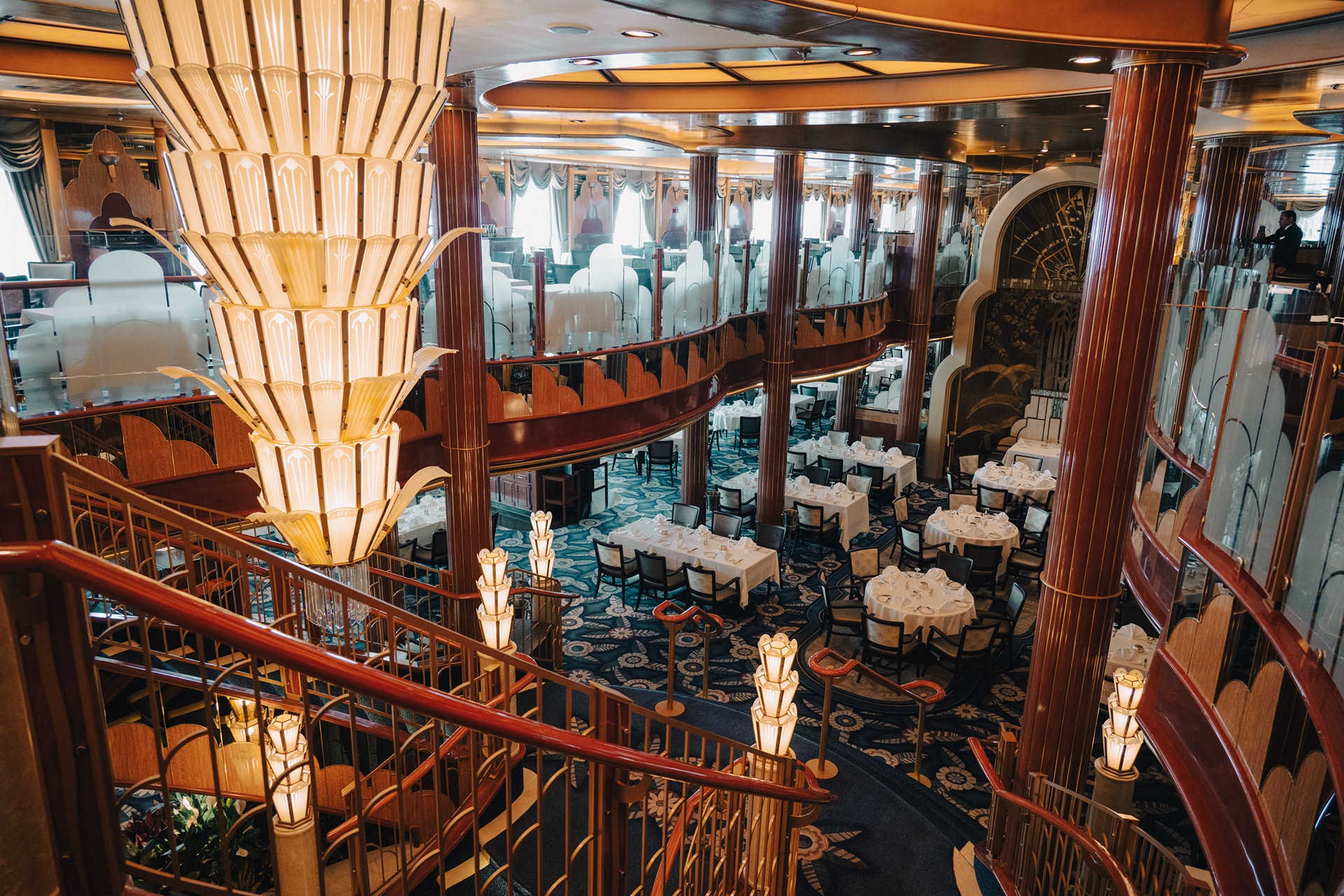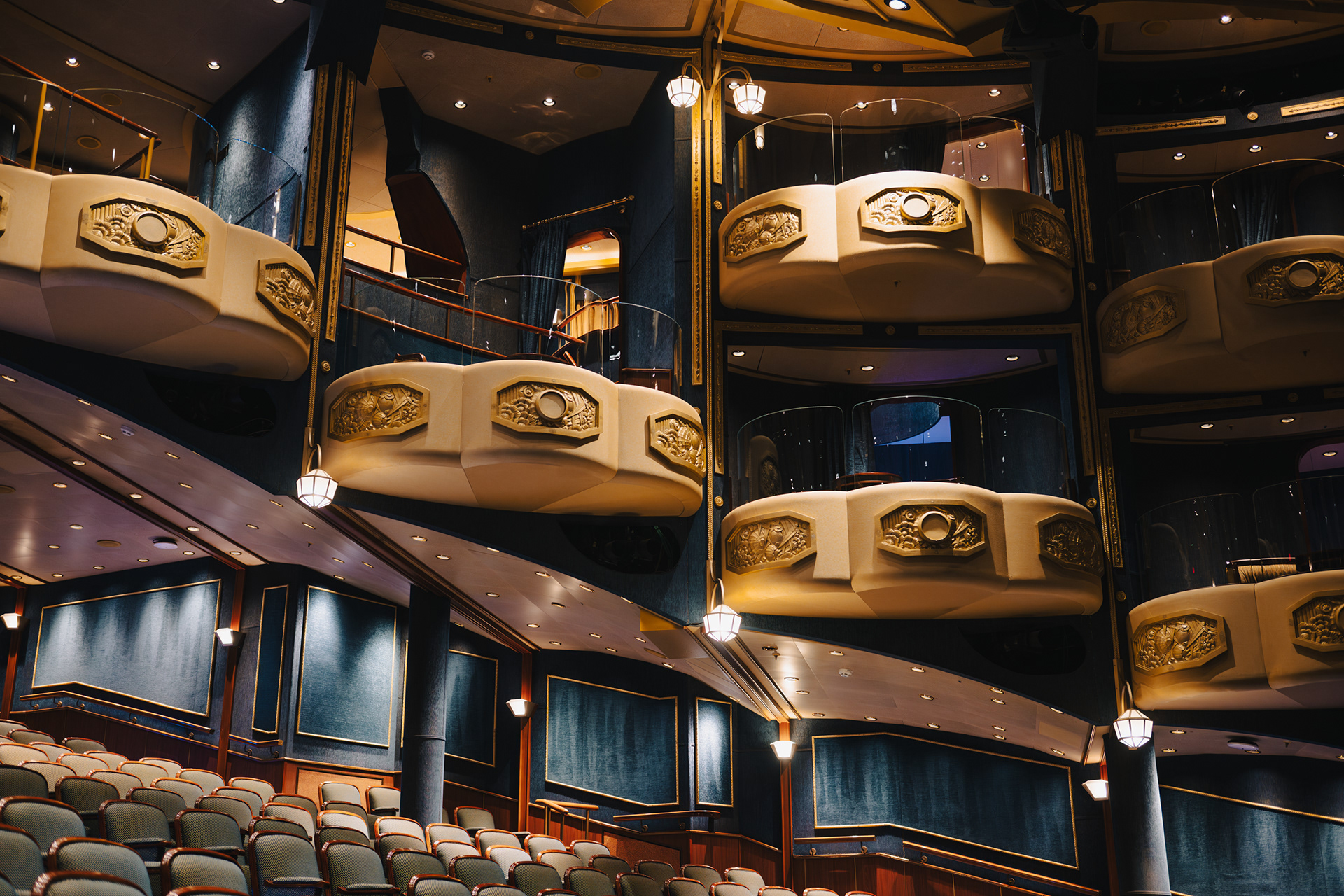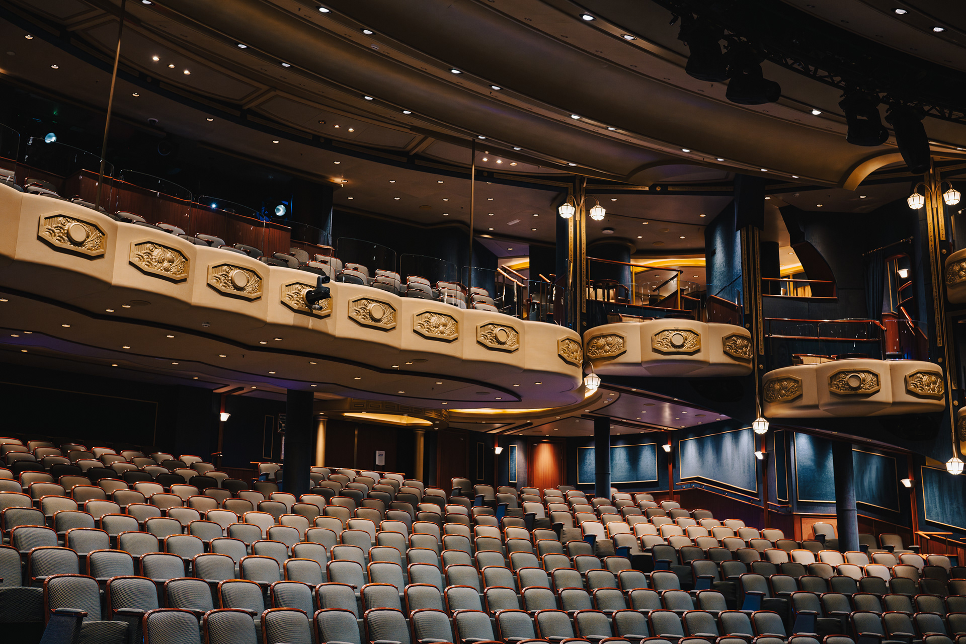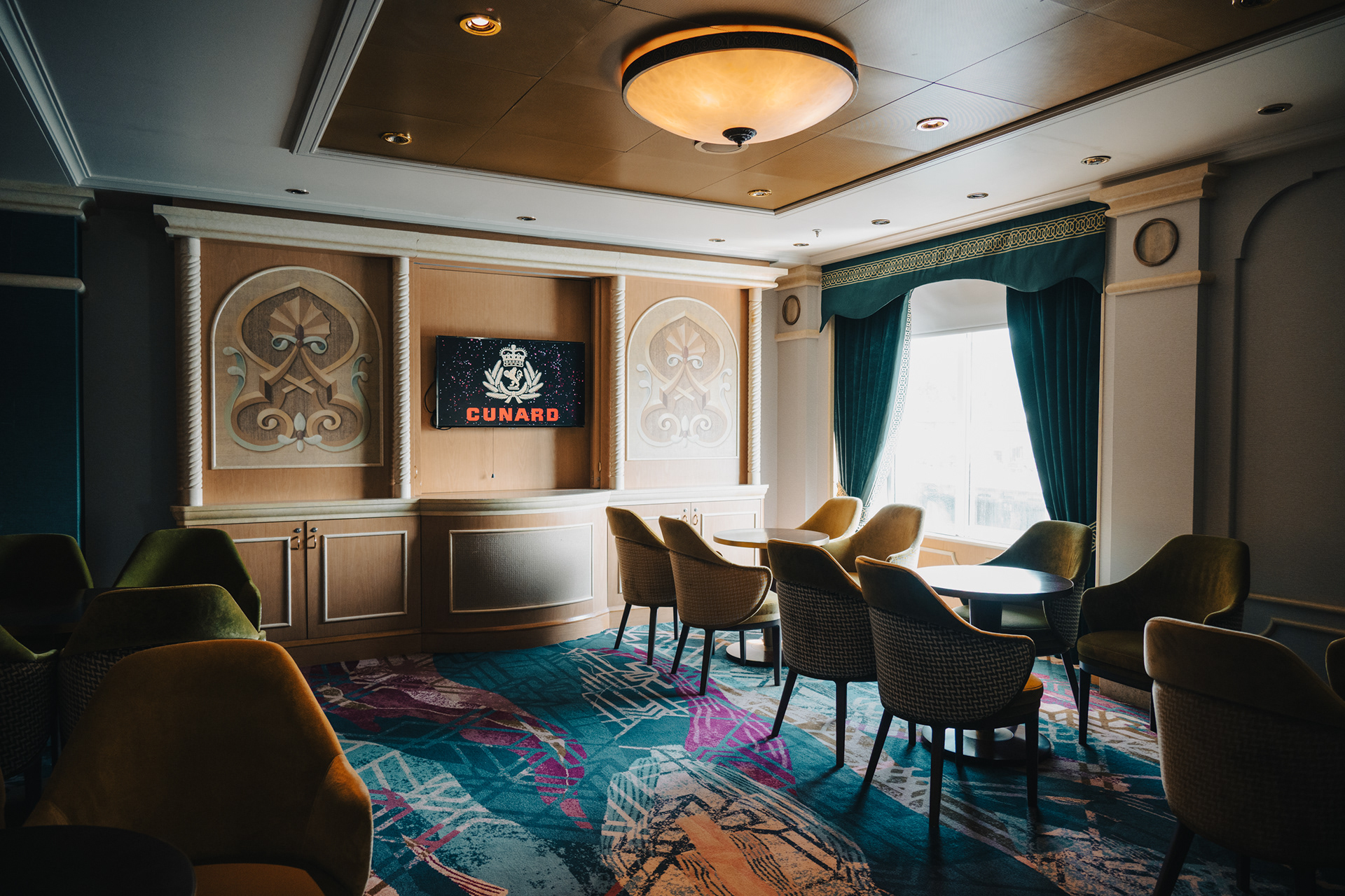 Our tour took us through the sophisticated heart of the vessel, starting with the Grand Lobby, a stunning three-story atrium featuring a marquetry panel of the original Queen Elizabeth liner. We explored the unique Games Deck where guests can play croquet and bowls under the open sky, peeked into the famous two-story Library with its iconic wooden spiral staircase, and admired the Queens Room, the largest ballroom at sea. To top off the experience, we watched part of a show in the ship's theatre and enjoyed a delicious lunch at the elegant Britannia Restaurant. Whether you're a fan of maritime tradition or just looking for a refined escape, the Queen Elizabeth offers a timeless glimpse into the art of cruising.