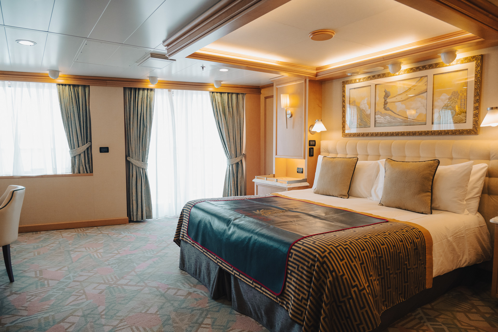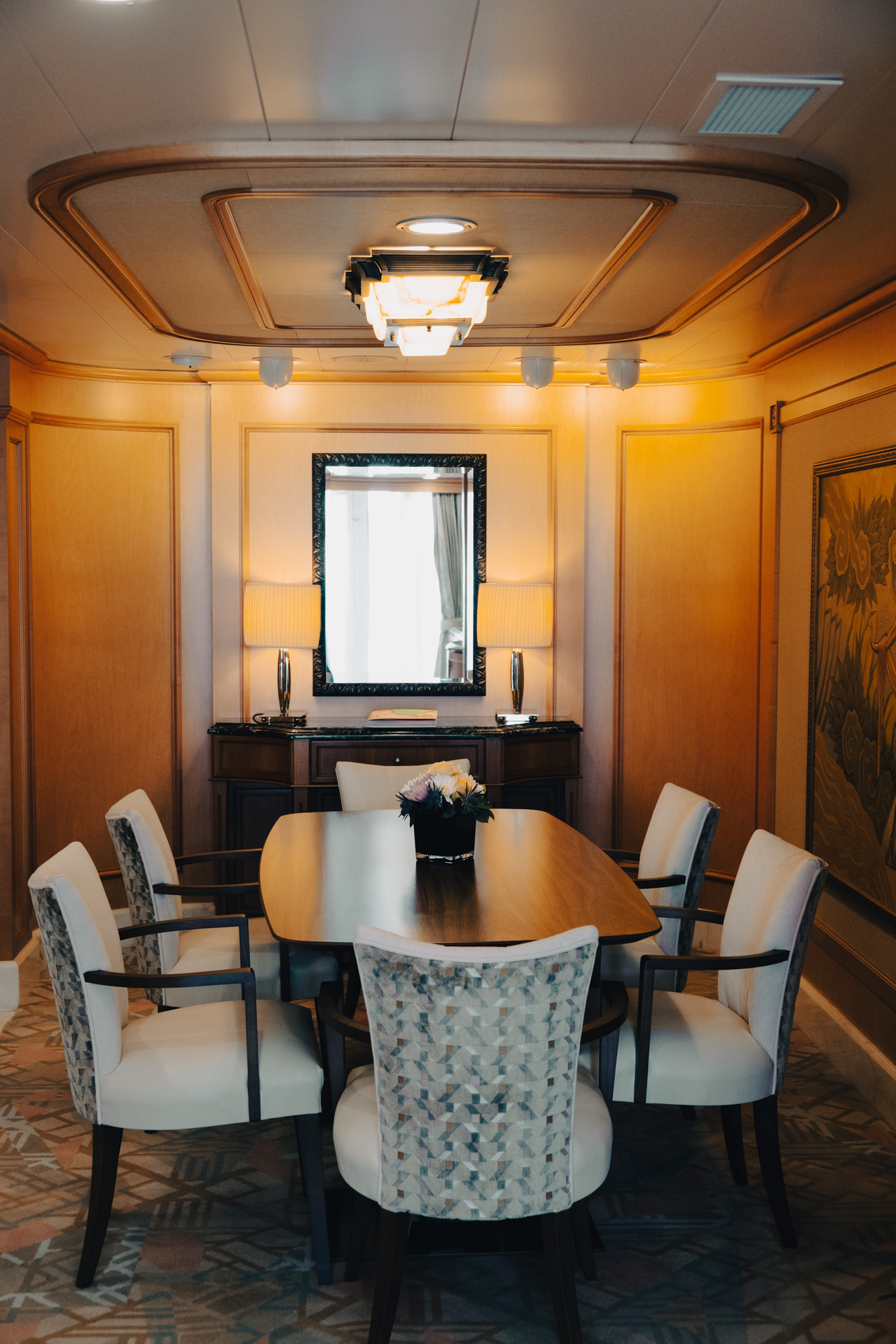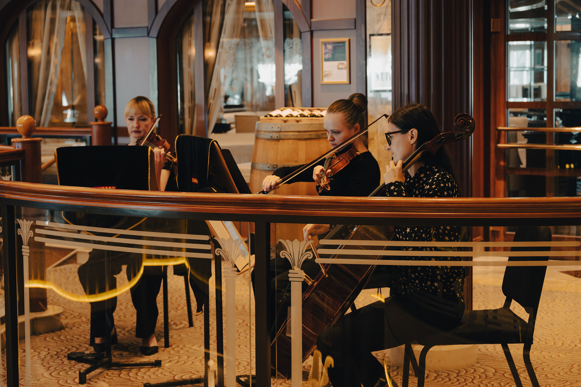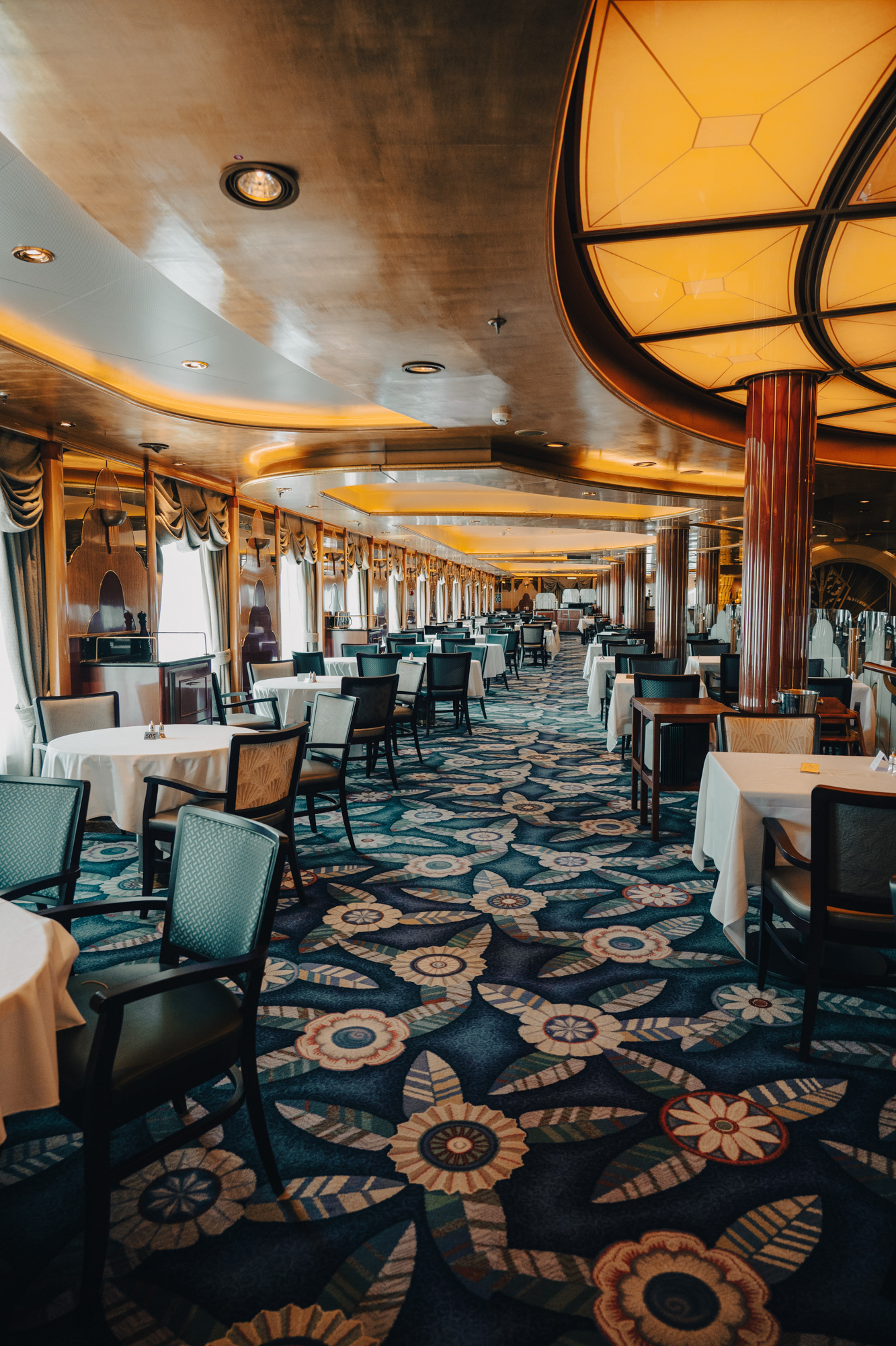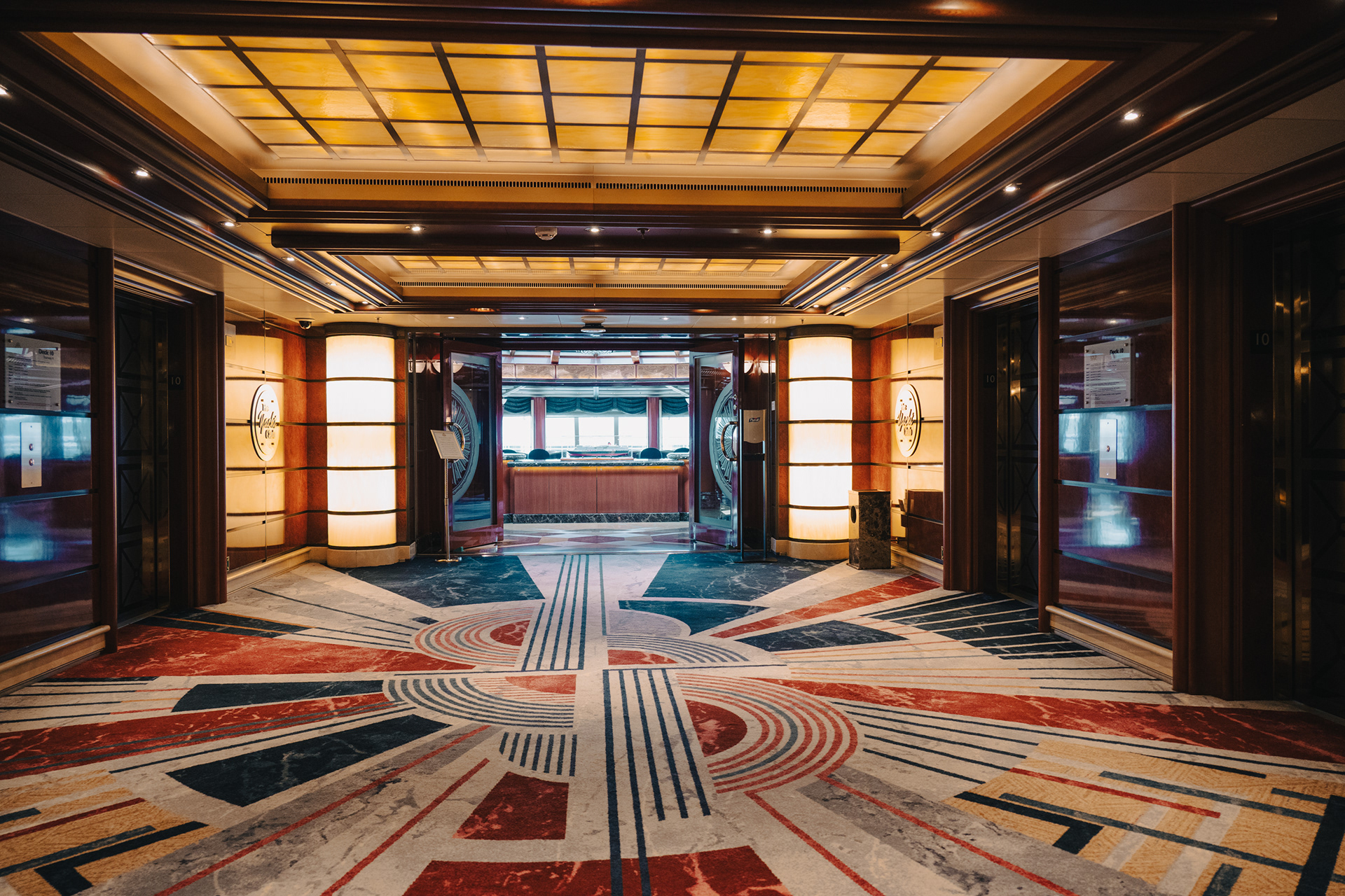 Our tour took us through the sophisticated heart of the vessel, starting with the Grand Lobby, a stunning three-story atrium featuring a marquetry panel of the original Queen Elizabeth liner. We explored the unique Games Deck where guests can play croquet and bowls under the open sky, peeked into the famous two-story Library with its iconic wooden spiral staircase, and admired the Queens Room, the largest ballroom at sea. To top off the experience, we watched part of a show in the ship's theatre and enjoyed a delicious lunch at the elegant Britannia Restaurant. Whether you're a fan of maritime tradition or just looking for a refined escape, the Queen Elizabeth offers a timeless glimpse into the art of cruising.