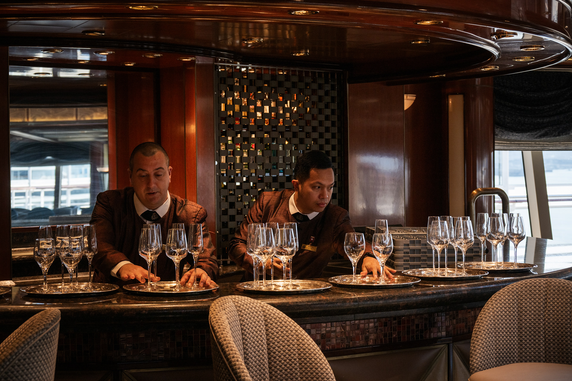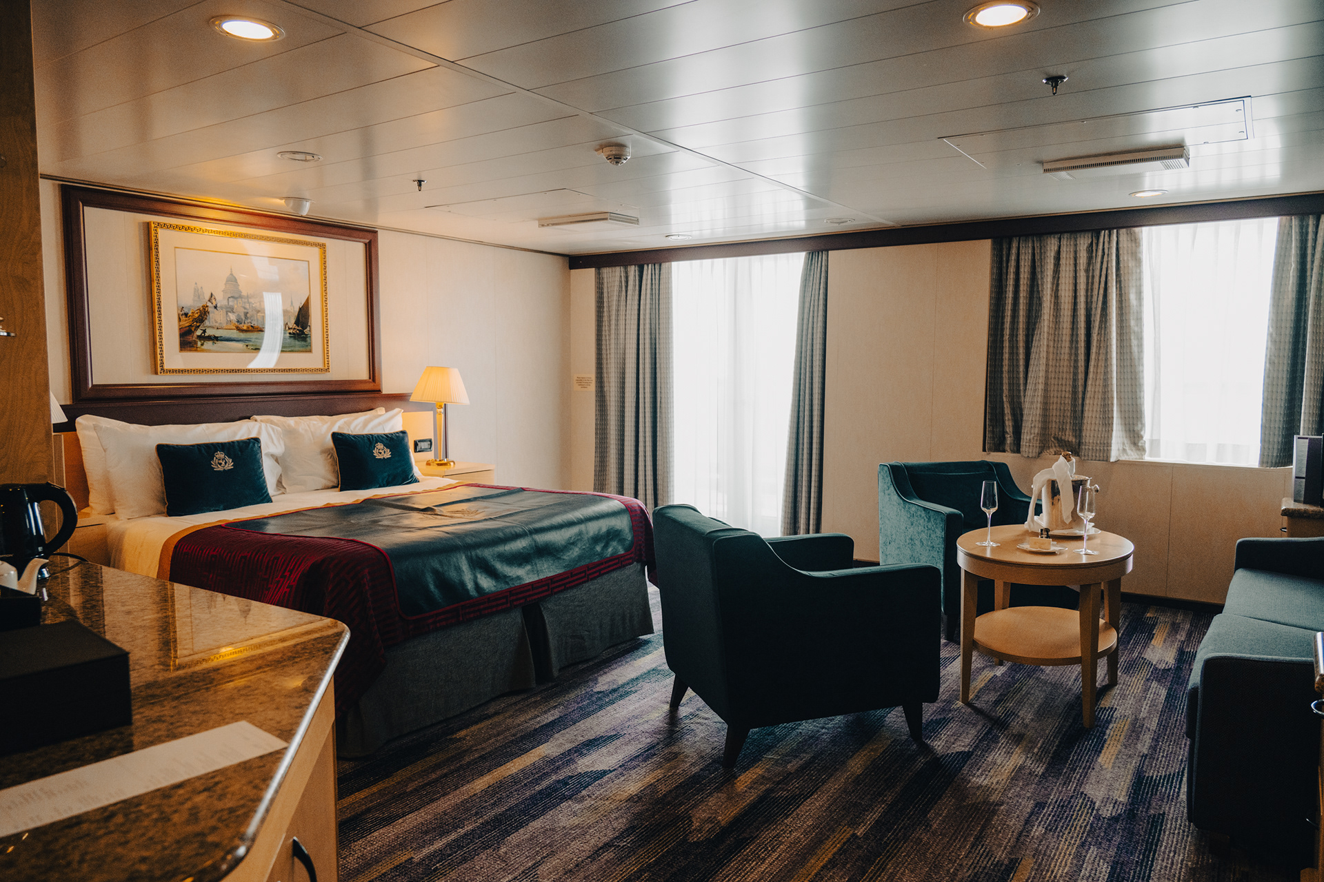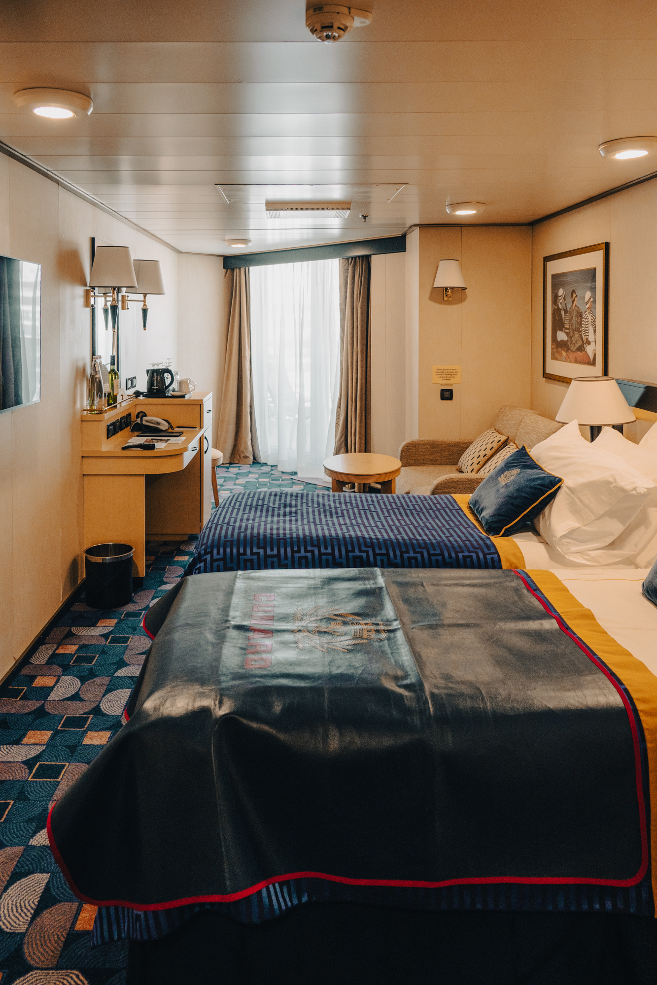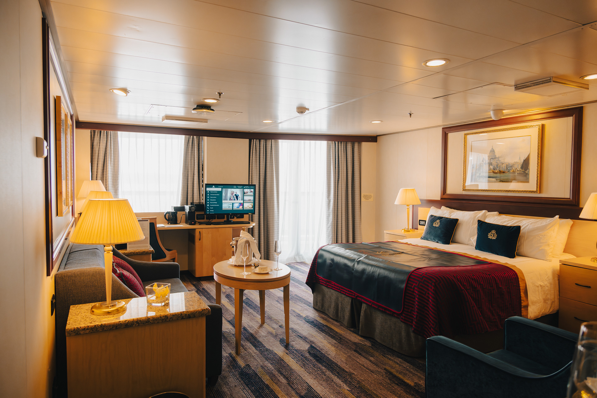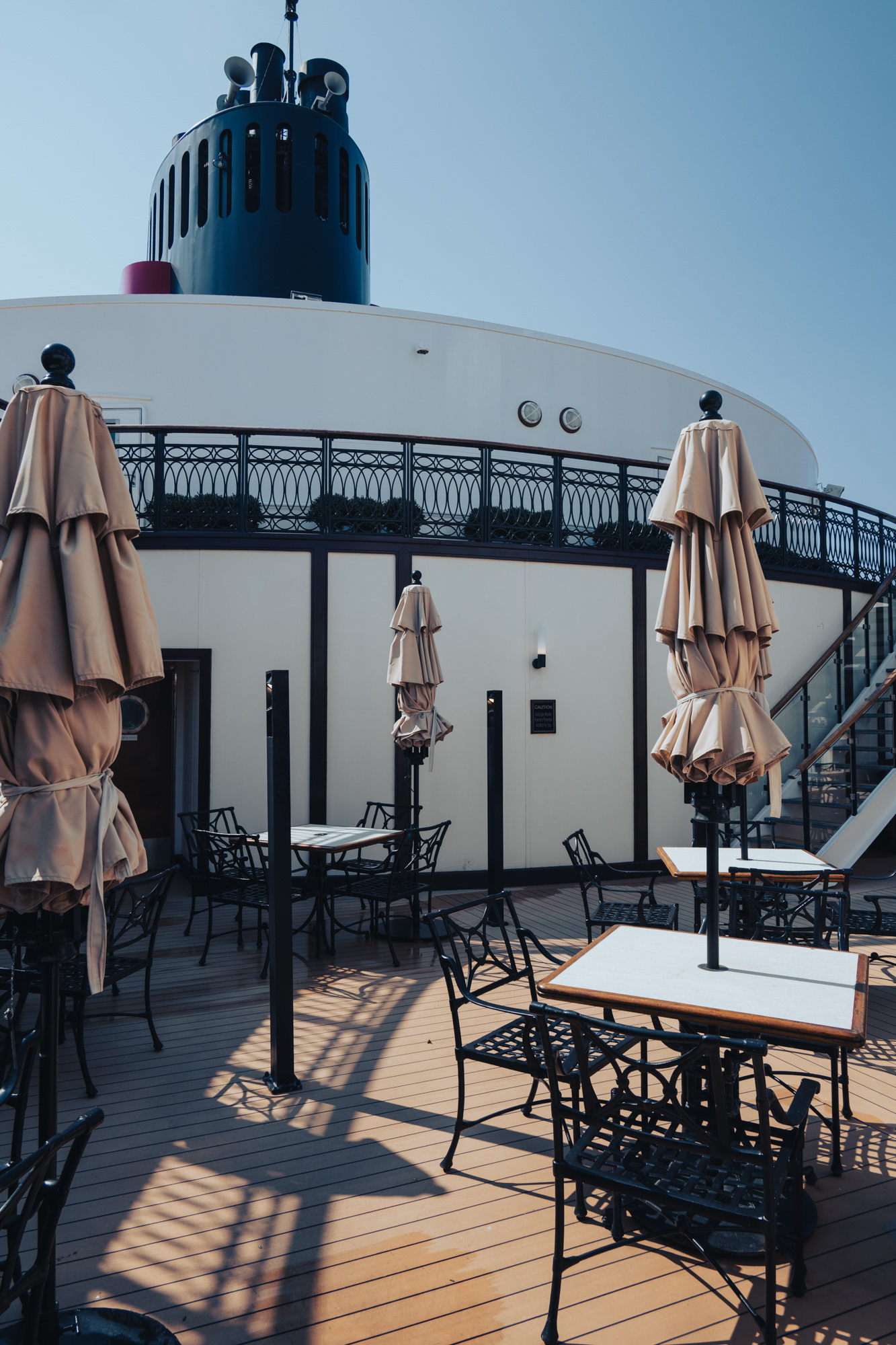 Our tour took us through the sophisticated heart of the vessel, starting with the Grand Lobby, a stunning three-story atrium featuring a marquetry panel of the original Queen Elizabeth liner. We explored the unique Games Deck where guests can play croquet and bowls under the open sky, peeked into the famous two-story Library with its iconic wooden spiral staircase, and admired the Queens Room, the largest ballroom at sea. To top off the experience, we watched part of a show in the ship's theatre and enjoyed a delicious lunch at the elegant Britannia Restaurant. Whether you're a fan of maritime tradition or just looking for a refined escape, the Queen Elizabeth offers a timeless glimpse into the art of cruising.